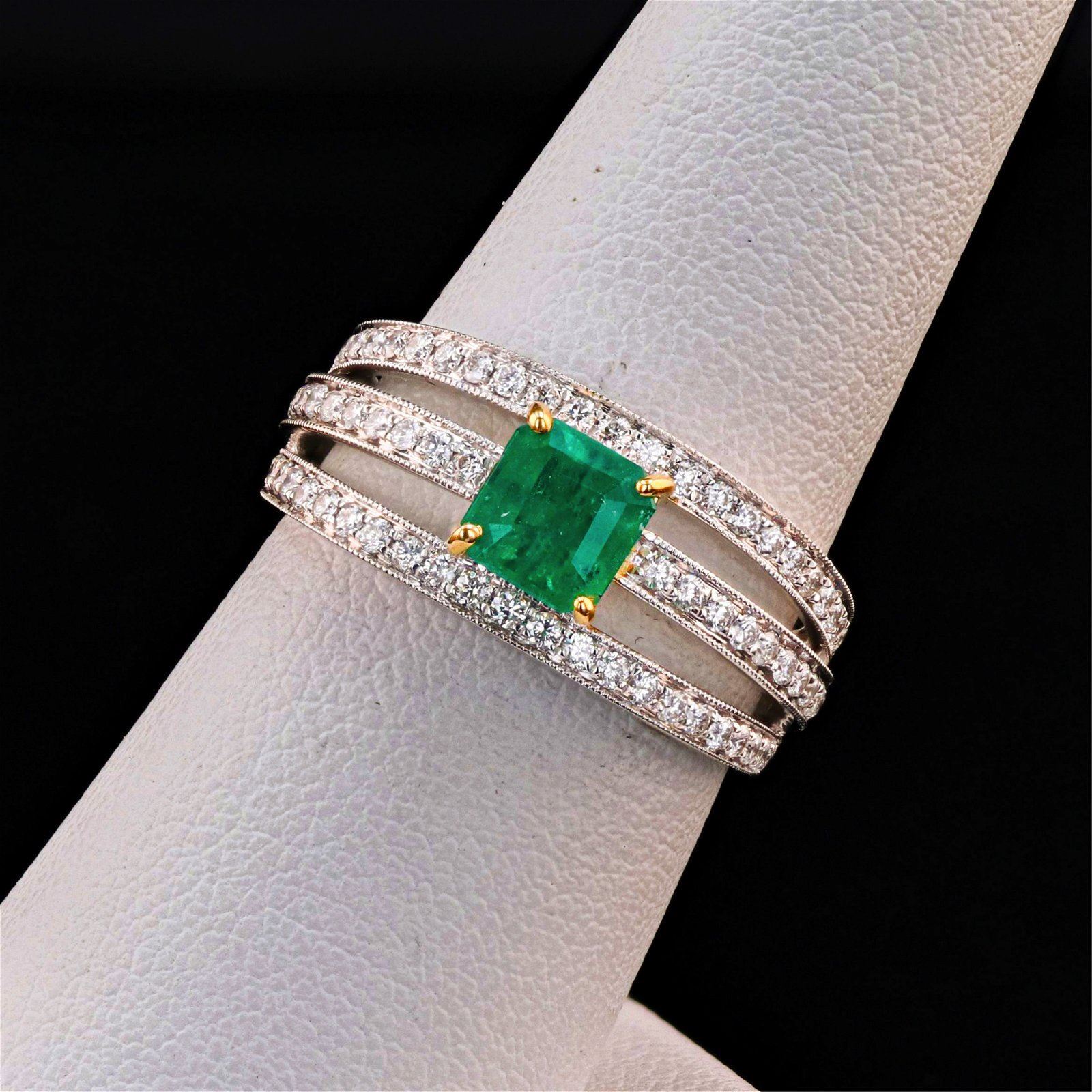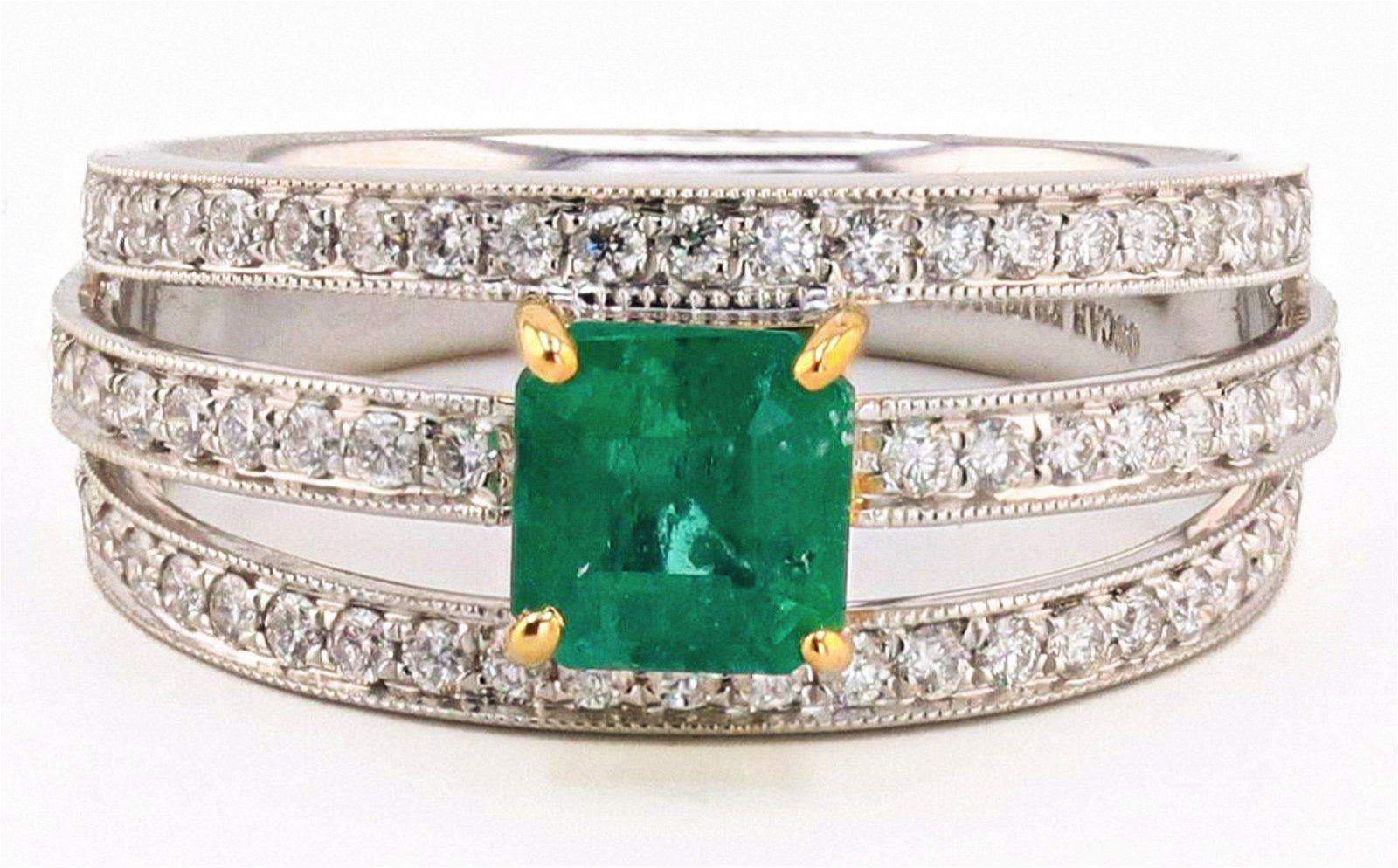 0.70CT EMERALD & 0.48CTW DIAMOND 18K GOLD RING