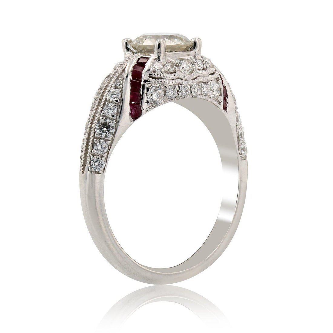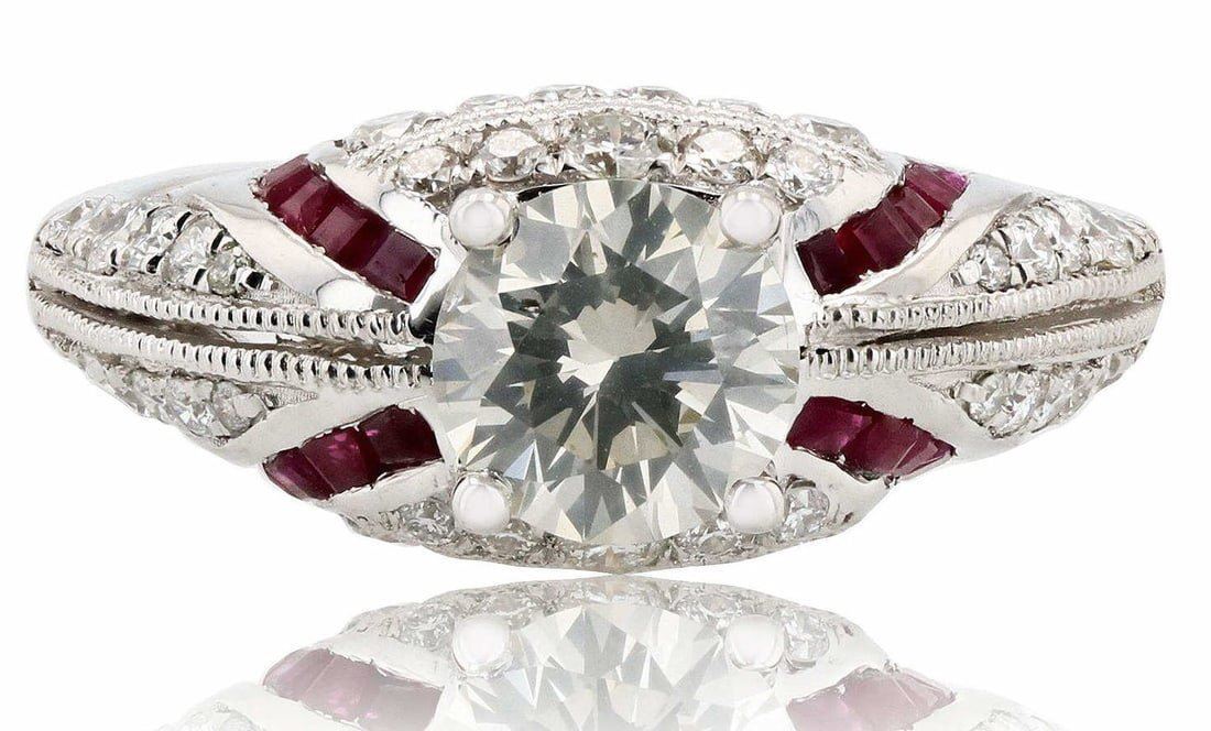 1.01CT SI3 CENTER DIA & 0.68CTW RUBY PLATINUM RING