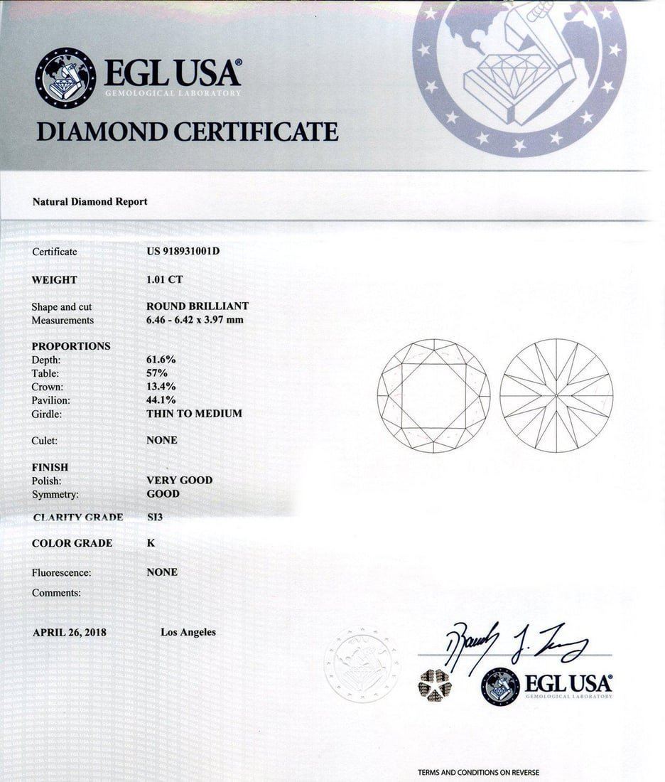 Platinum Diamond and Ruby Ring One polished, stamped, and tested platinum ring with a bright finish. The ring is mounted with 1 genuine EGL certified diamond center stone weighing 1.01 carat, 20 genuine faceted rubies weighing approximately 0.68 carats, and 46 genuine round diamonds weighing approximately 0.64 carats. This item weighs 6.7 grams, condition is new, excellent workmanship. MAIN GEMSTONE EGL Report No.: US 918931001D Identity: Natural Diamond Shape: Round Cutting Style: Brilliant Cut Measurements: 6.46 - 6.42 x 3.97 mm Weight: 1.01 carat Color Grade: K Clarity Grade: SI3 Polish: Very Good Symmetry: Good RefractiveIndex: 2.417 Hardness: 10 ADJACENT GEMSTONES ON RING Identity: Natural Diamond Shape: Round Cutting Style: Brilliant Cut Quantity: 46 Diamonds Measurement: 0.9 - 2.0 mm Total Weight: 0.64 carats Color Grade: G - HClarity Grade: VS2 - SI2 Refractive Index: 2.418 Hardness: 10 ADJACENT GEMSTONES ON RING Species: Natural Corundum Variety: Ruby Shape: Square Cutting Style: Step Cut Quantity: 20 Rubies Average Dimensions: 1.5