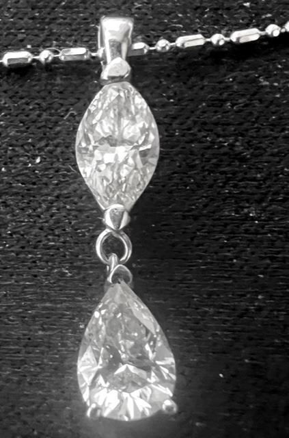2 Stone Genuine Diamond 21" 14K White Gold Necklace, Pear Shape & Marquis Diamonds, .70 Ct ea