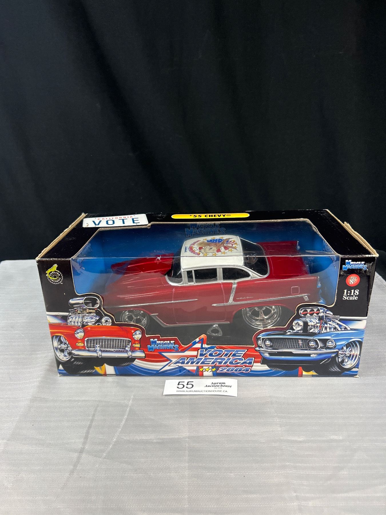 1/18th Scale Muscle Machines 1955 Chevy Bel Air Diecast Car in Original Box