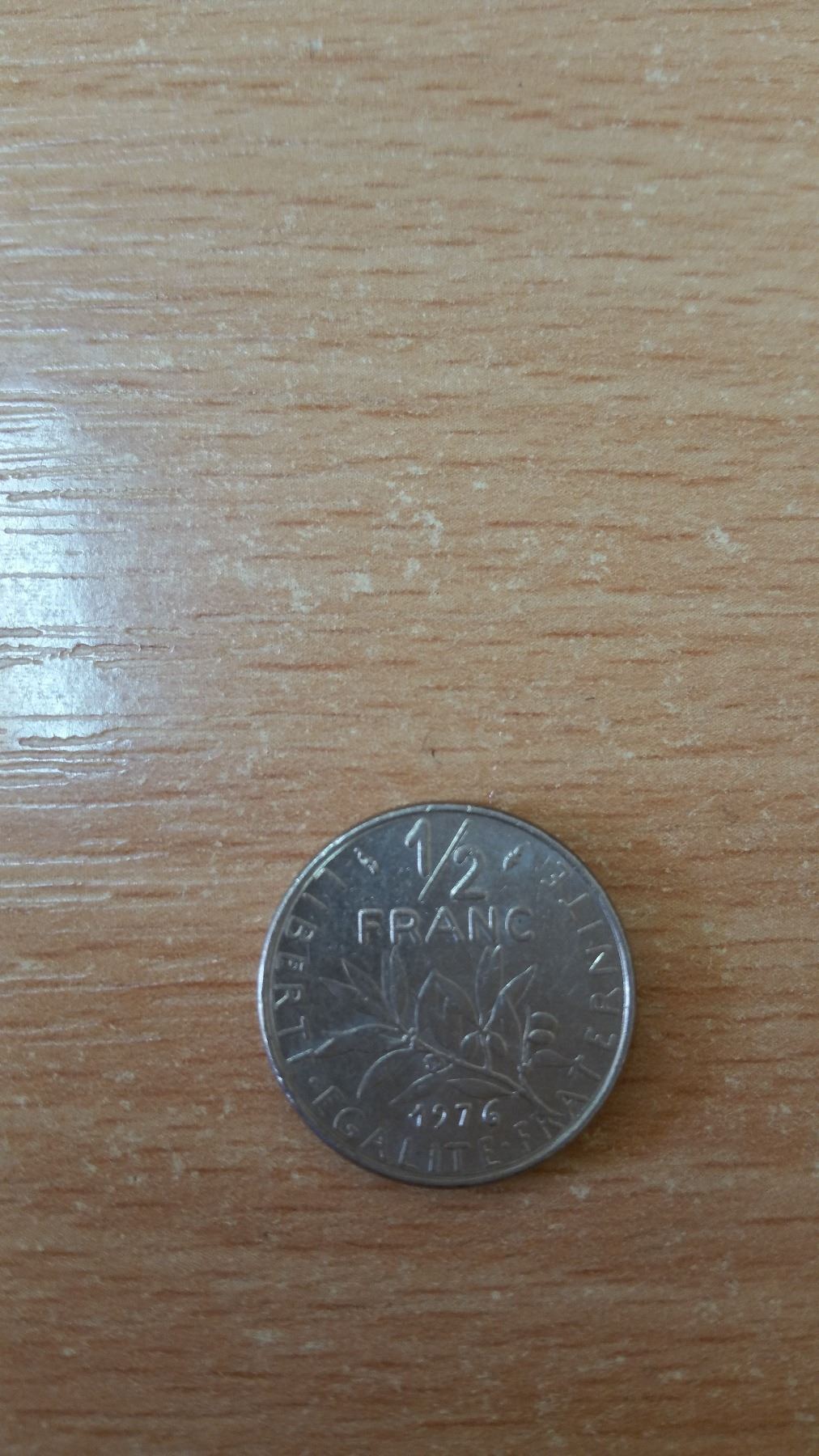 Underneath the facial value, an olive branch is surrounded with the French motto: "LIBERTE - EGALITE - FRATERNITE" (liberty, equality, fraternity