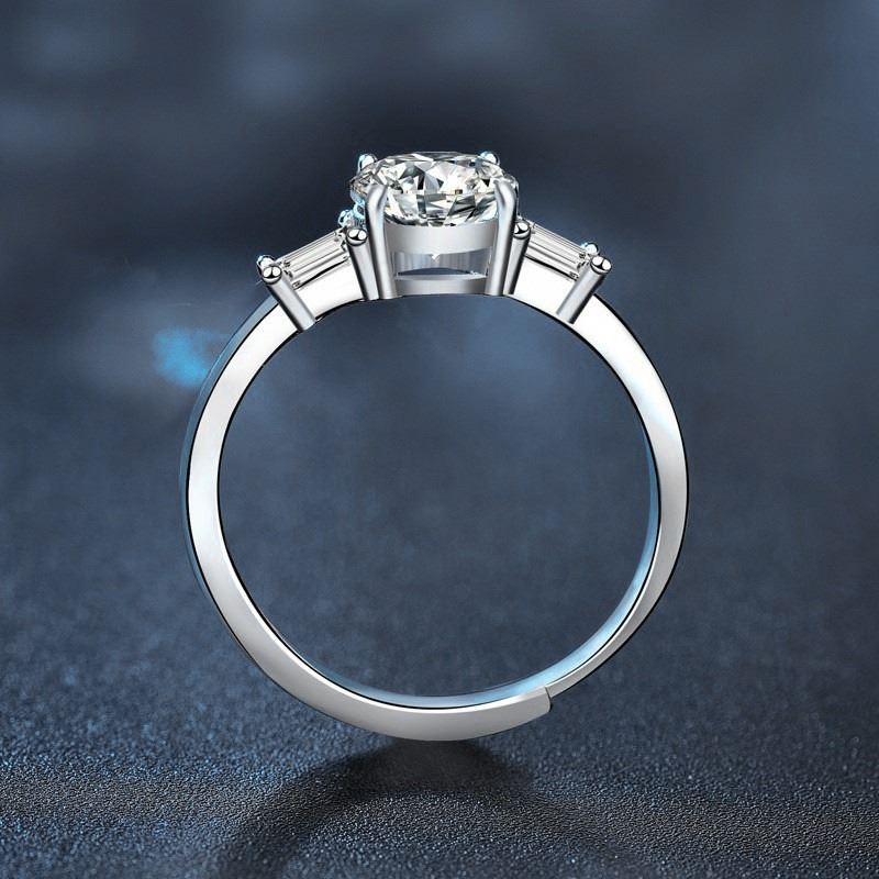 925S OPEN ADJUSTIBLE SIZE LUXURY RING WITH VVS D COLOR GRADE MOISSANITE STONE. COMES WITH ITS GRA CERTIFICATE. XJZ047