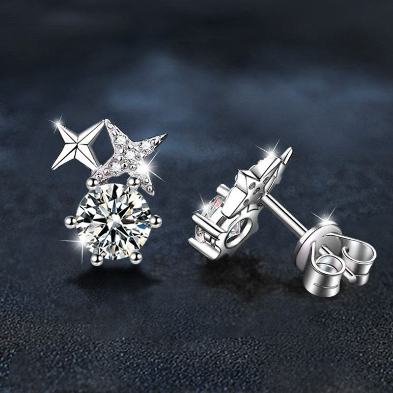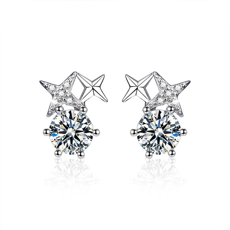CUT 925S EARRINGS WITH VVS D COLOR GRADE MOISSANITE CENTER STONE. COMES WITH ITS GRA CERTIFICATE. SET006