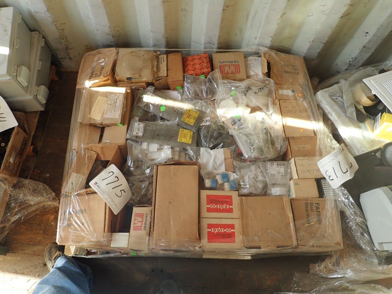 (1) pallet misc bearing, smoke detector, electrical components