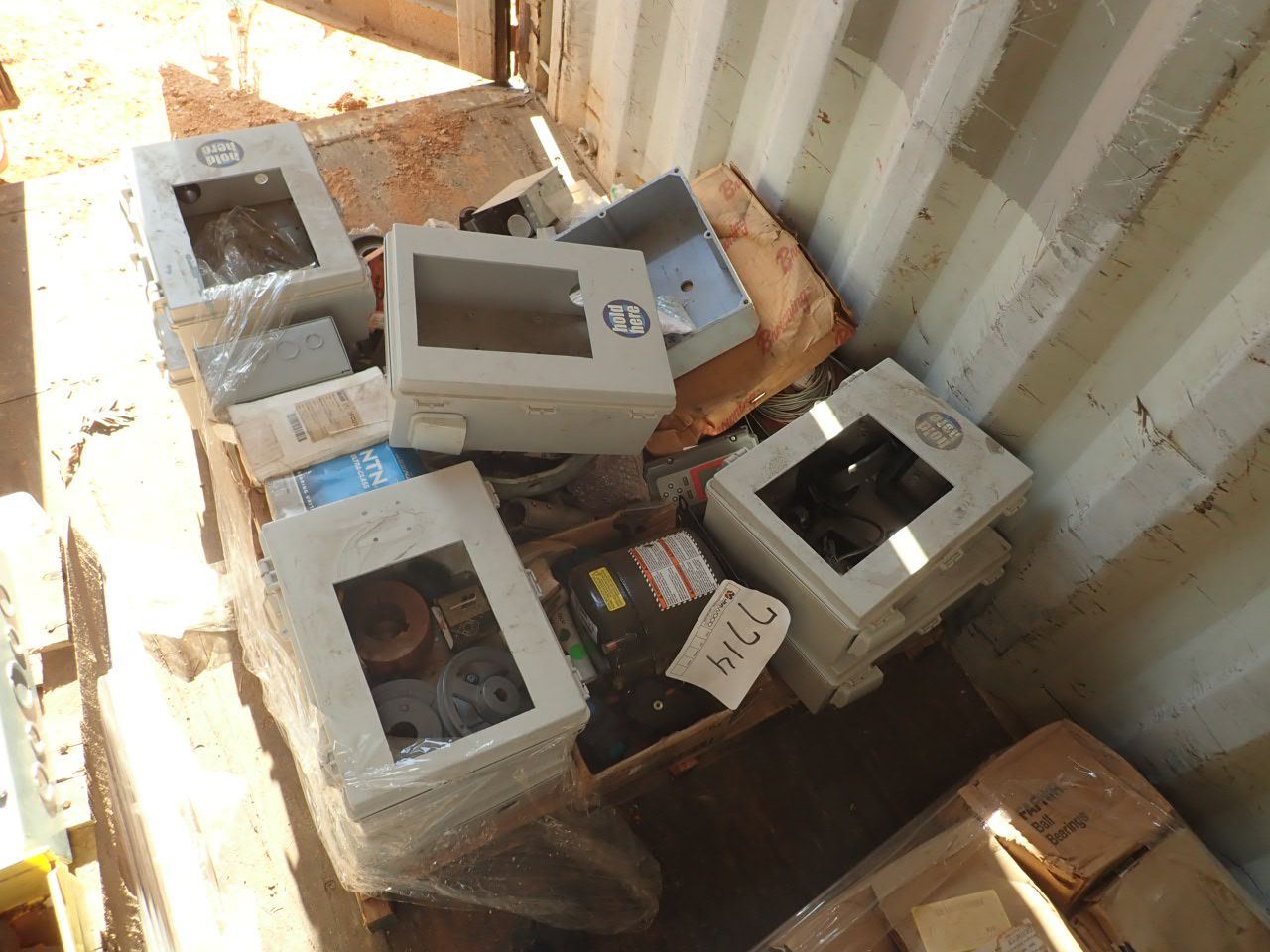(1) pallet misc, control panel boxes, pillar block bearing, bearing, elect component