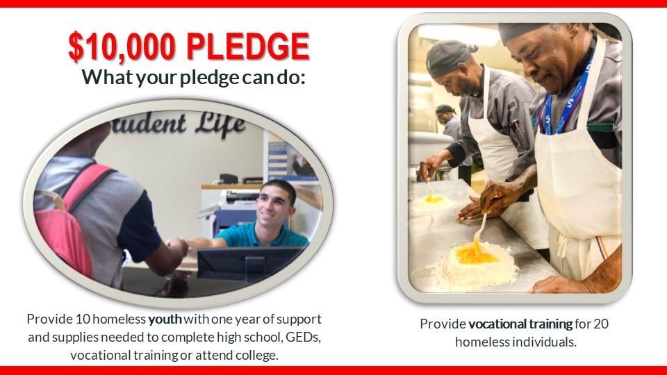 $10,000 provides 10 homeless youth with one year of support and supplies needed to complete high school, GEDs, vocational training or attend college.