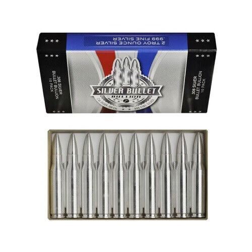 10 .999 Pure Silver 2 oz 308 Caliber Bullets (20 Oz Total)
