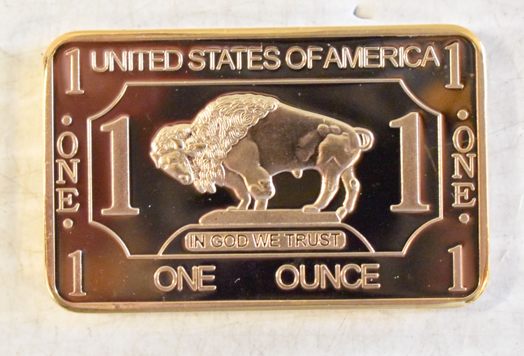 100 MILS .999 FINE GOLD CLAD 1 OZ BUFFALO BAR,
