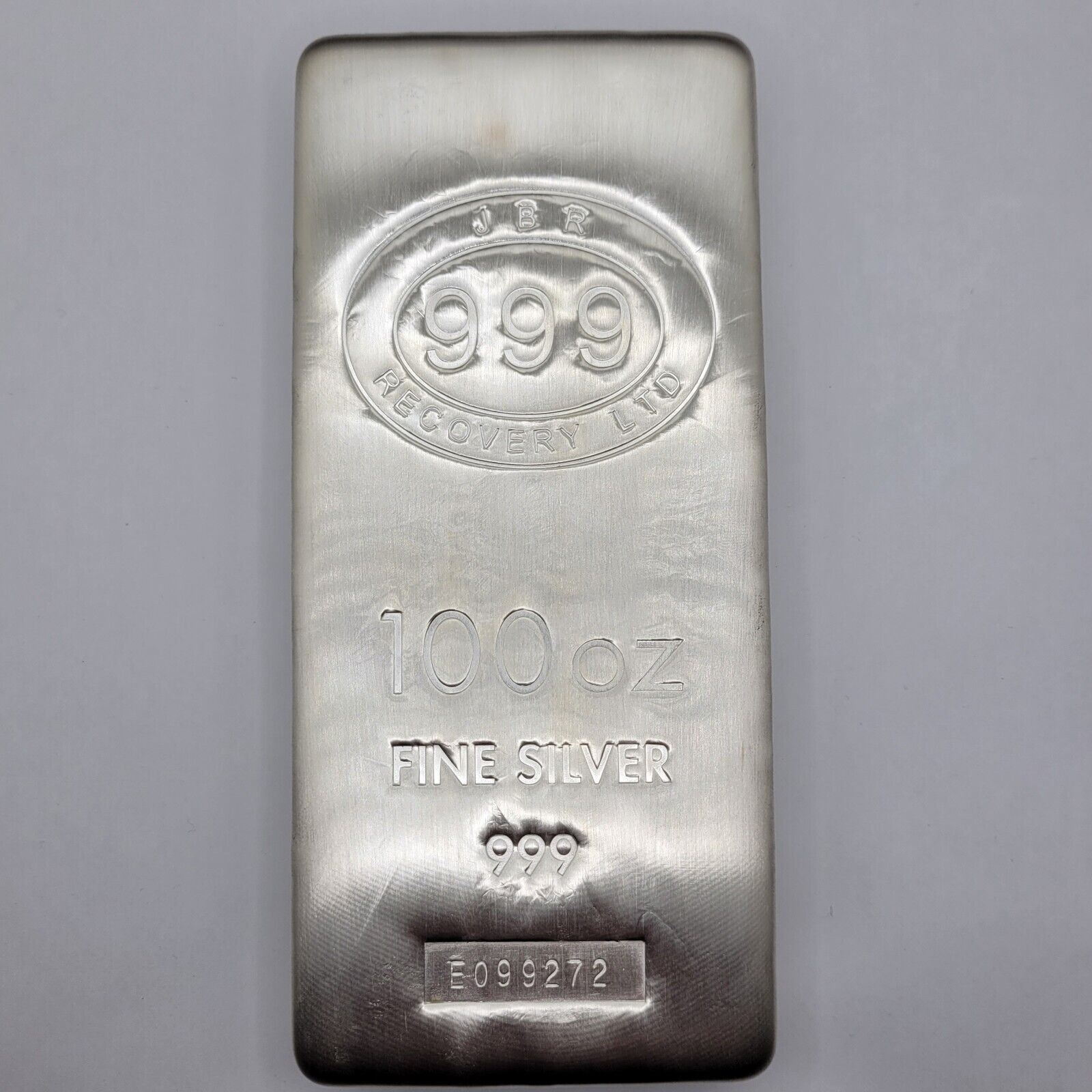 100 oz JBR Bullion Bar of .999 Fine Silver