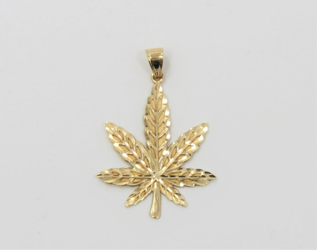 Stamped 10K yellow gold hemp pendant with bail. Weighs approximately 1.4 grams. Measures 1.2" x 0.9"
