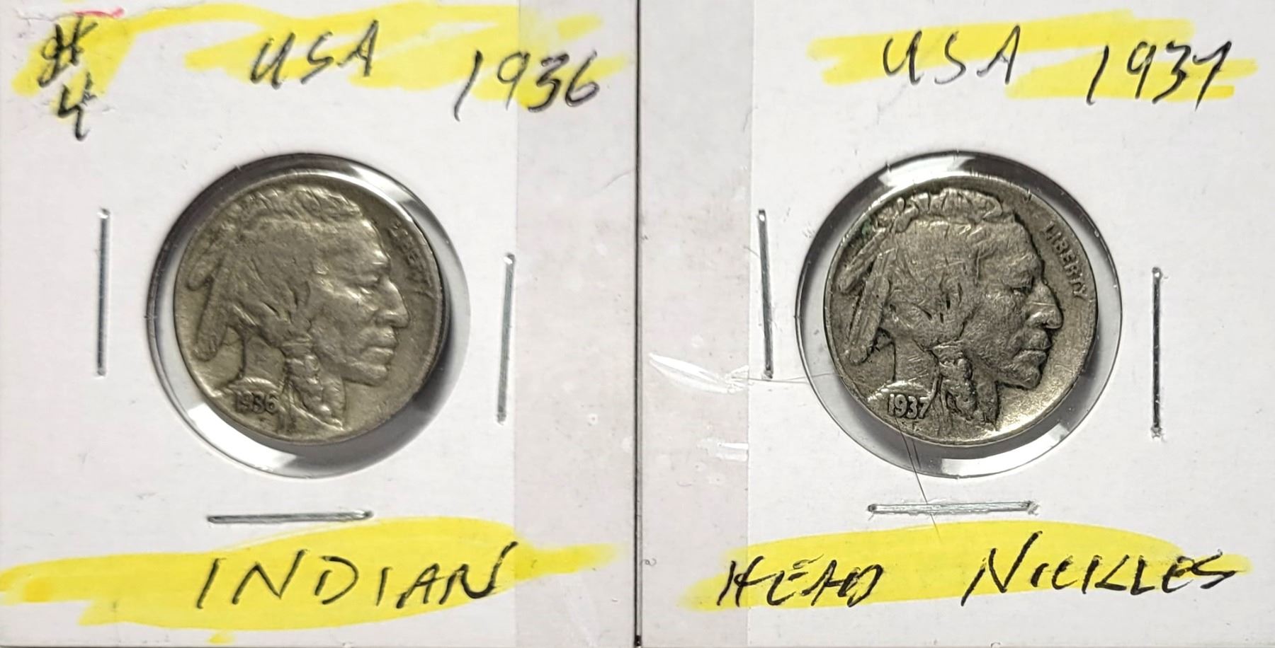 11) LOT OF 2 USA BUFFALO NICKLES, 1936 & 1937.