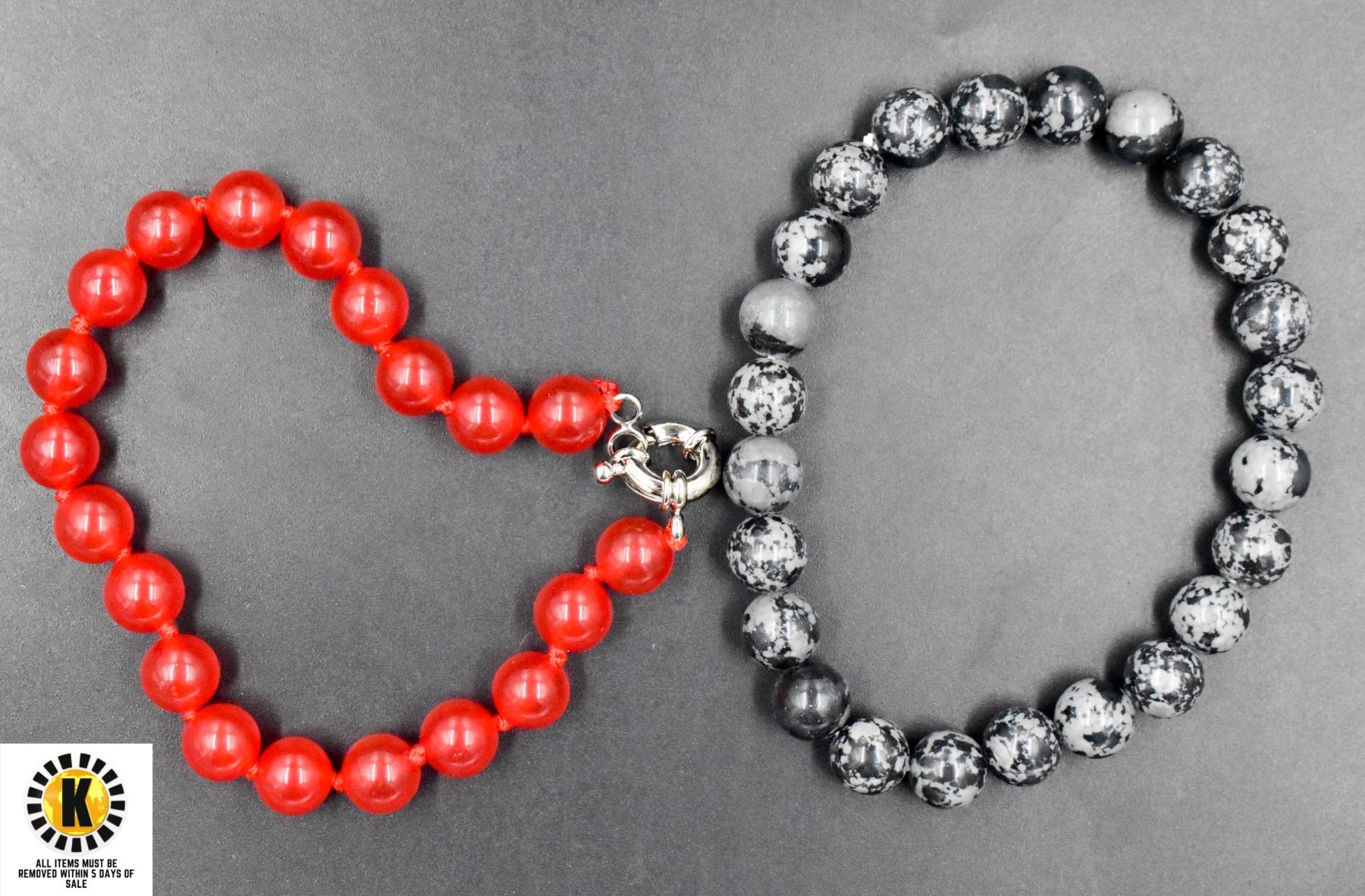 #111-NATURAL RED JADE, SNOW FLAK OBSIDIAN BRACELET