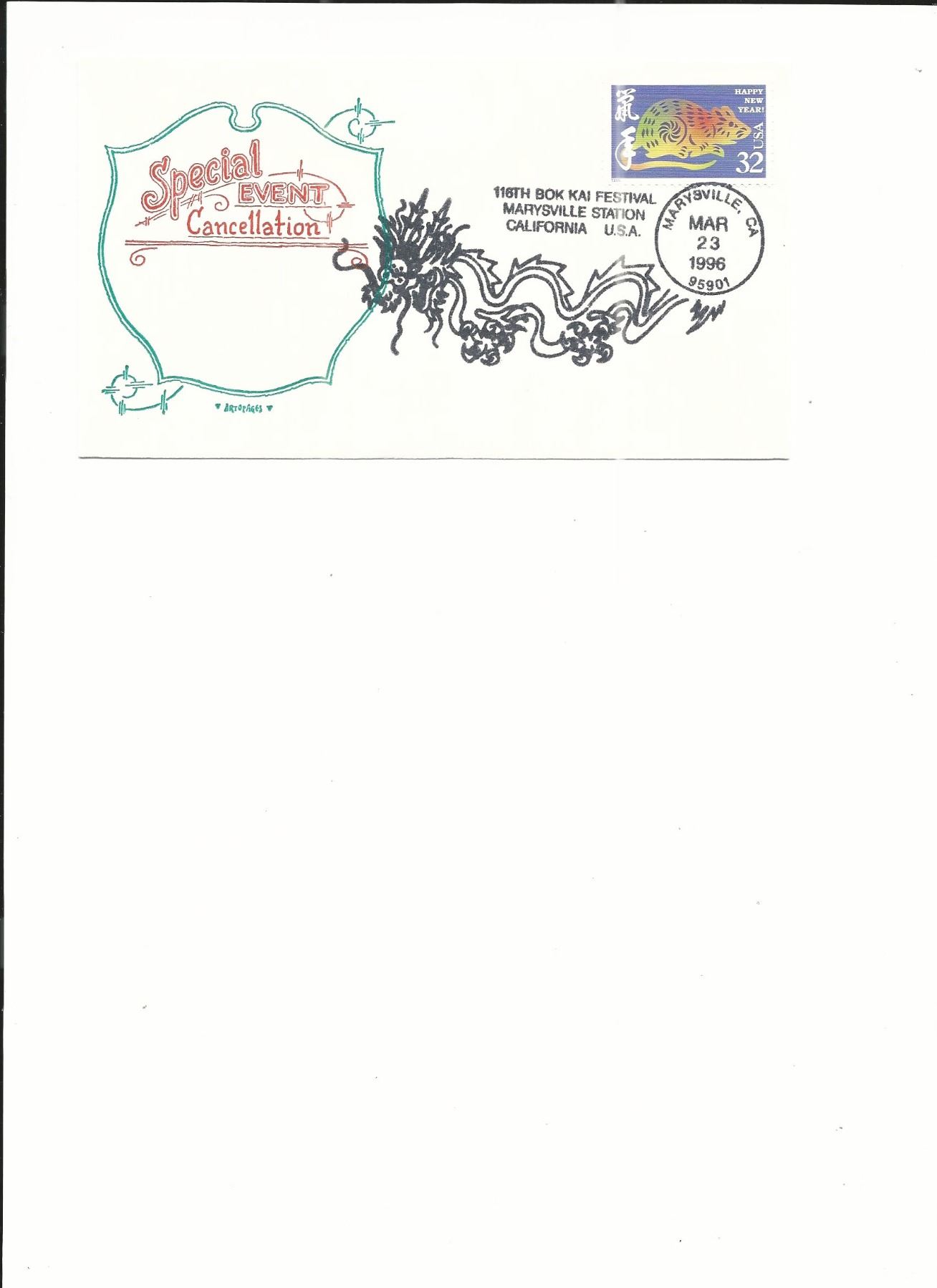 116th Bok Kai Festival - First Day Cover - Marysville, CA. - 1996 - Water God Cachet