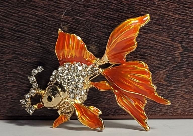 AND CLEAR CRYSTALS, KOI BROOCH. JEWELERY