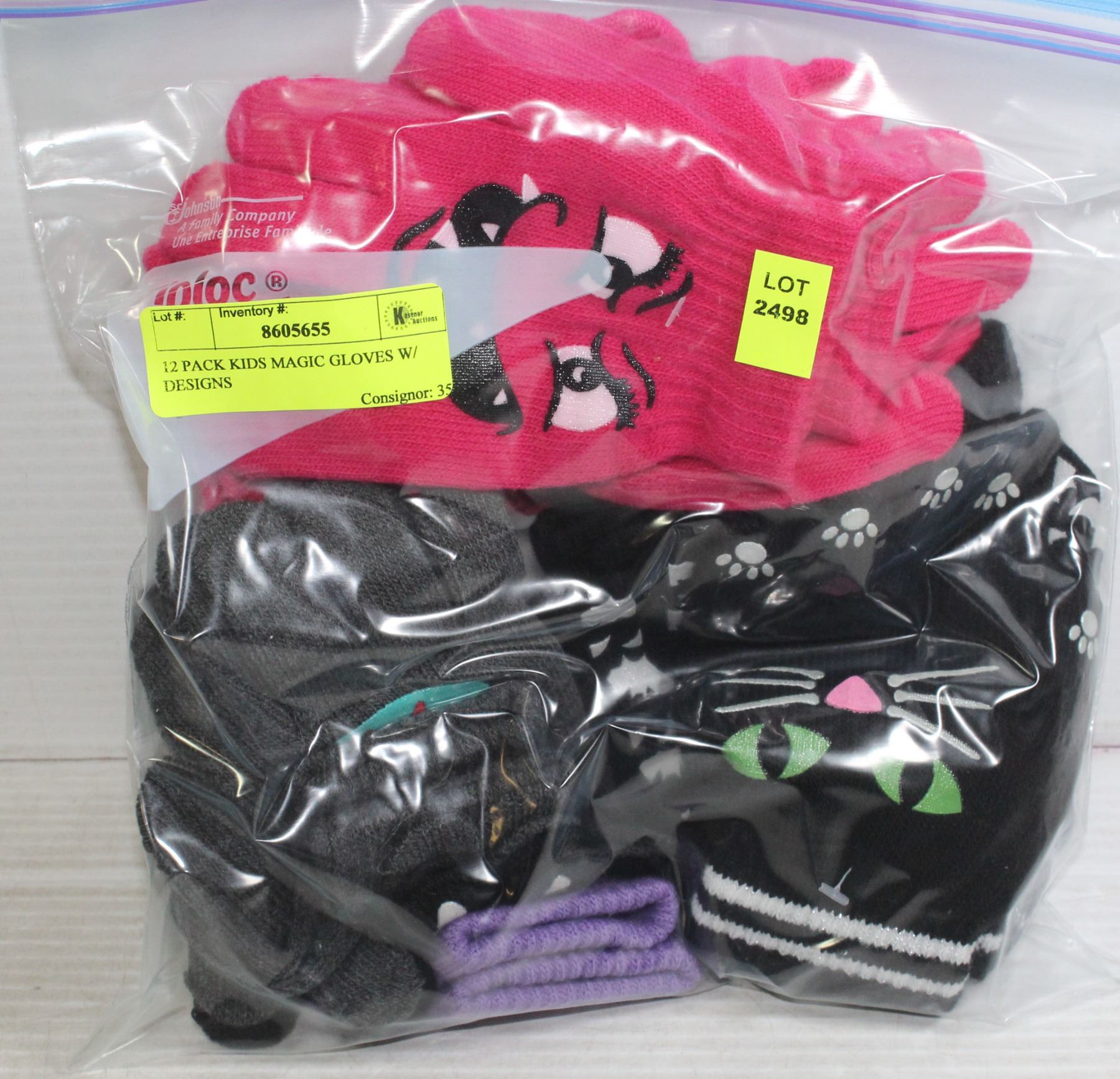 12 PACK KIDS MAGIC GLOVES W/ DESIGNS
