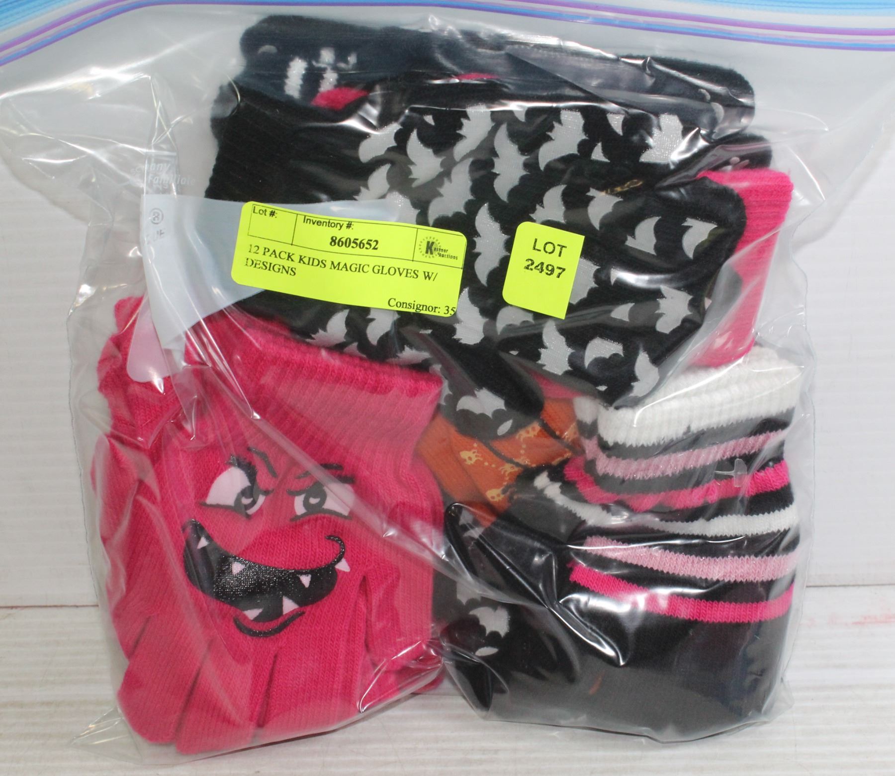 12 PACK KIDS MAGIC GLOVES W/ DESIGNS