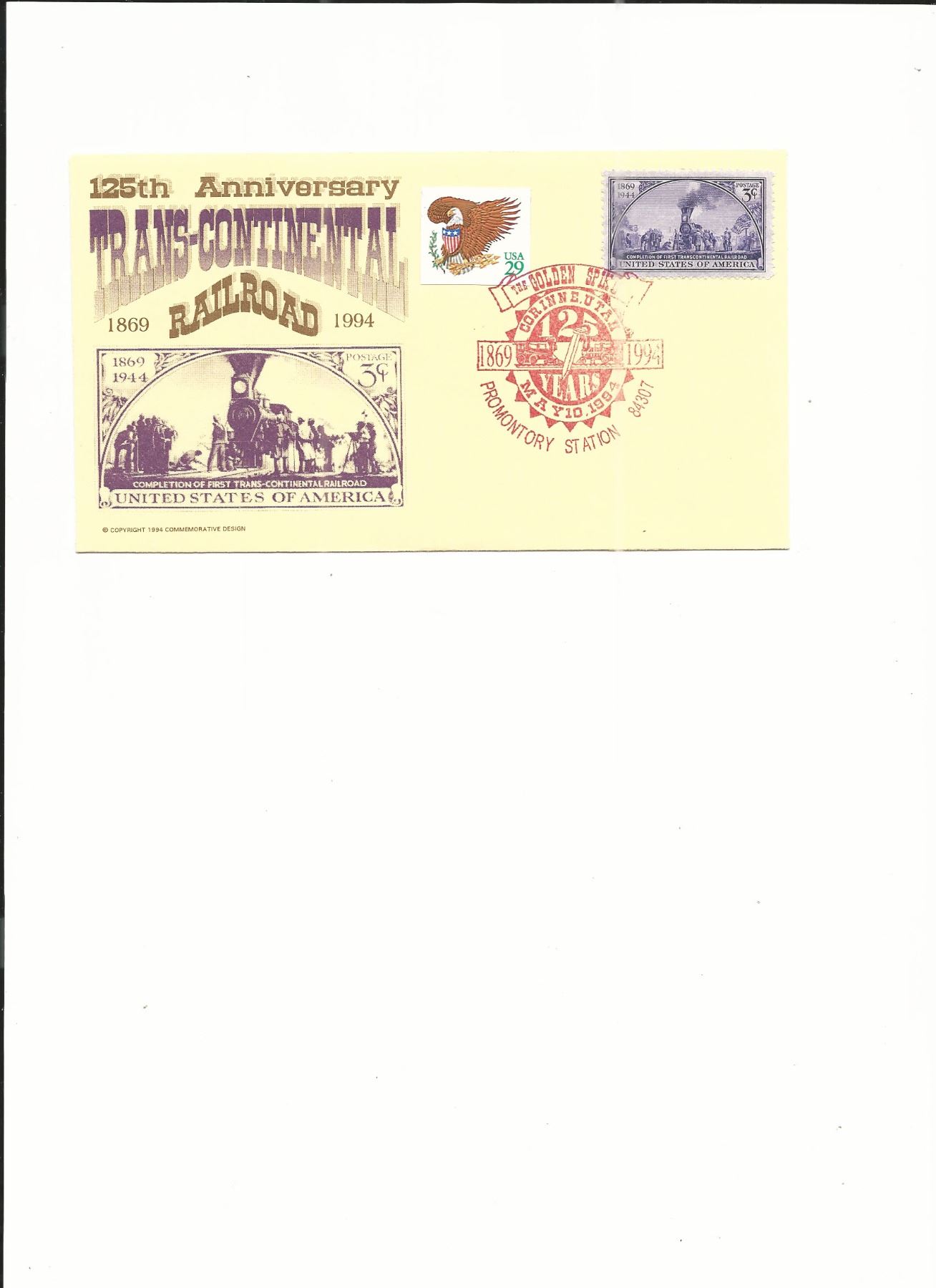 125th Anniversary Trans-Continental Railway -The Golden Spike - First Day Cover - Corrine, Utah - May 10th 1994