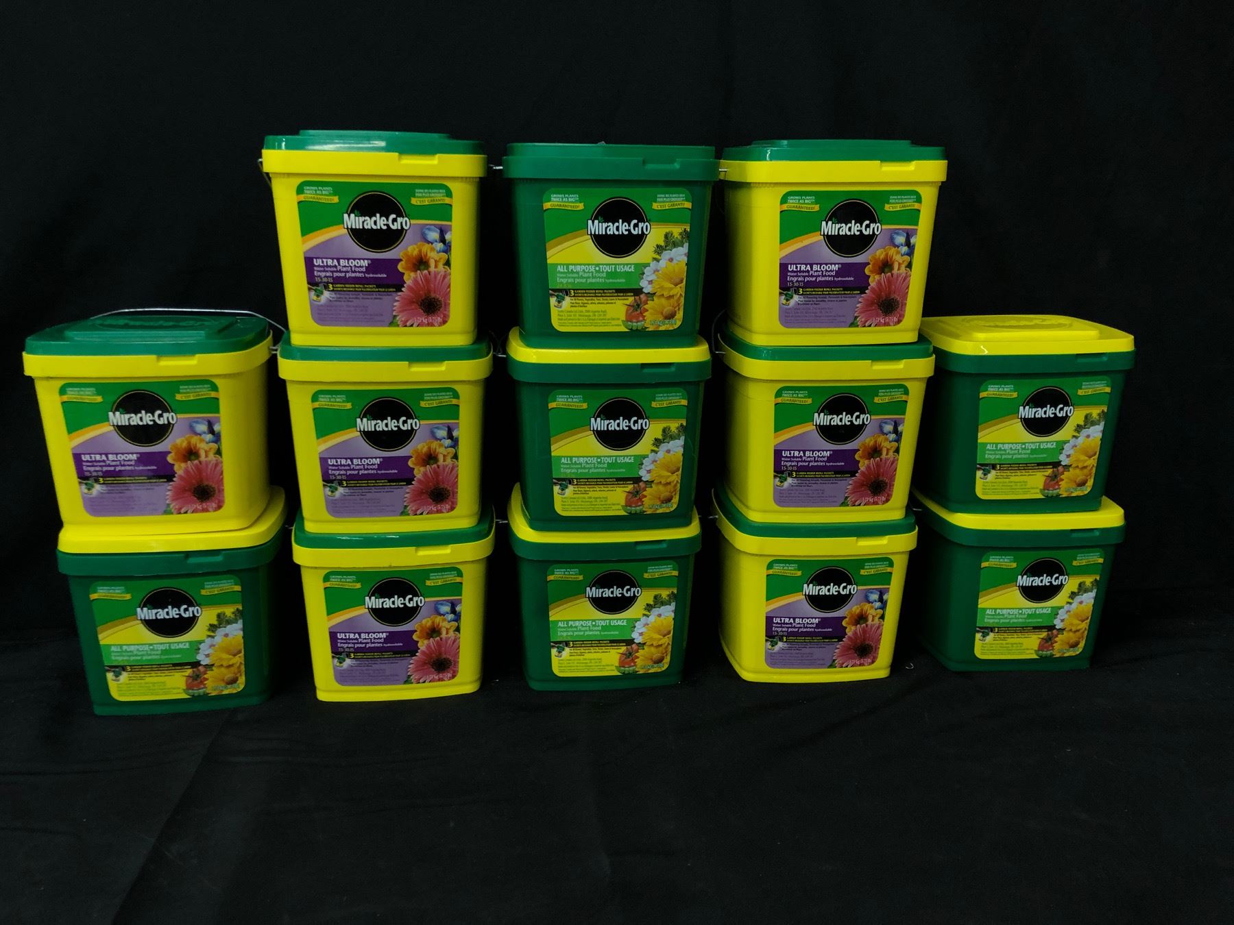 13 CONTAINERS OF ASSORTED MIRACLE GRO ULTRA BLOOM AND ALL PURPOSE PLANT FOOD