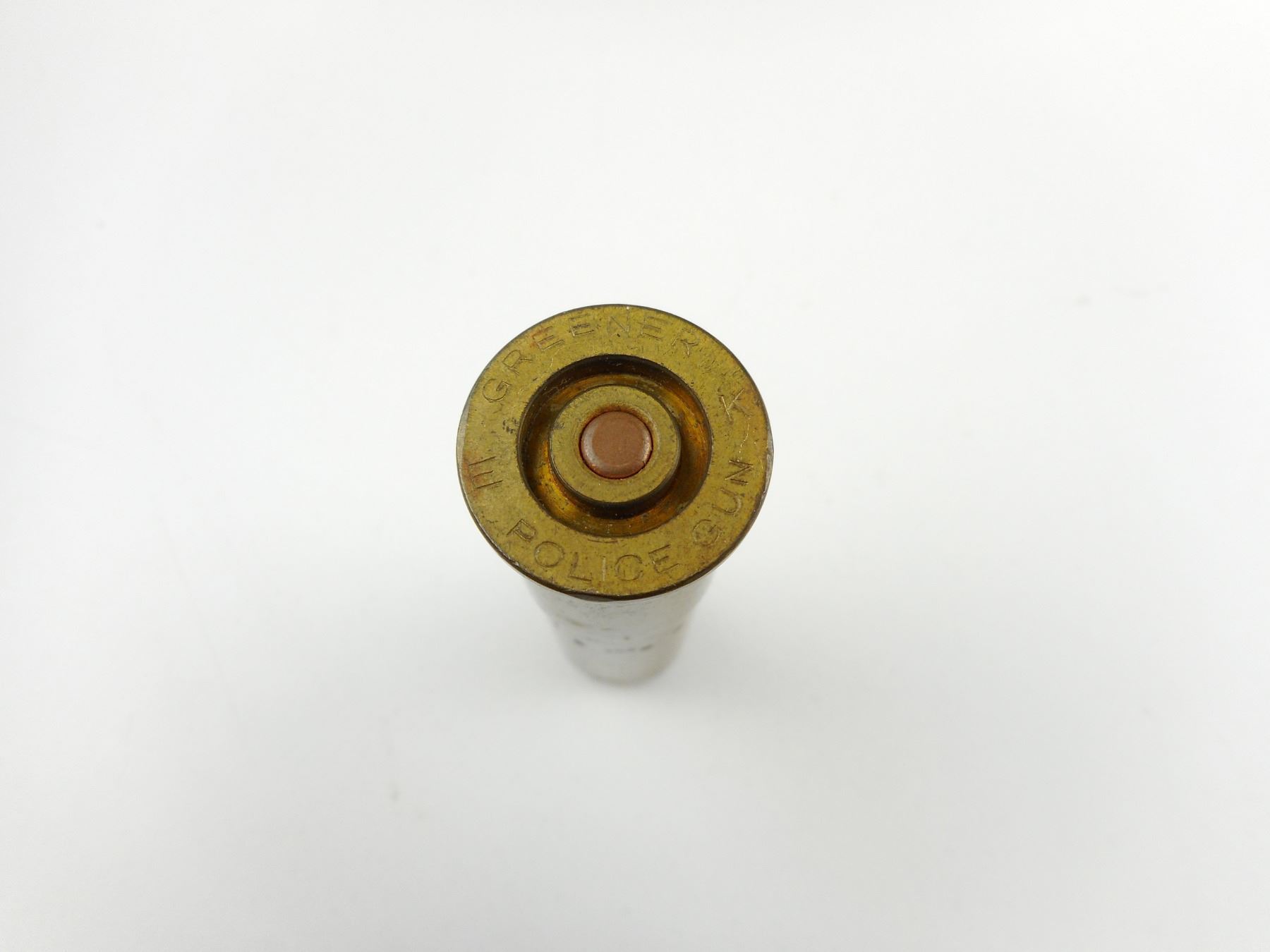 14 GA. GREENER POLICE GUN MK III SHELL , 1 RND 14 GA. MK III GREENER POLICE GUN SHELL, DESIGNED FOR THE GREENER POLICE GUN. SEE ITEM 725 IN SESSION 3