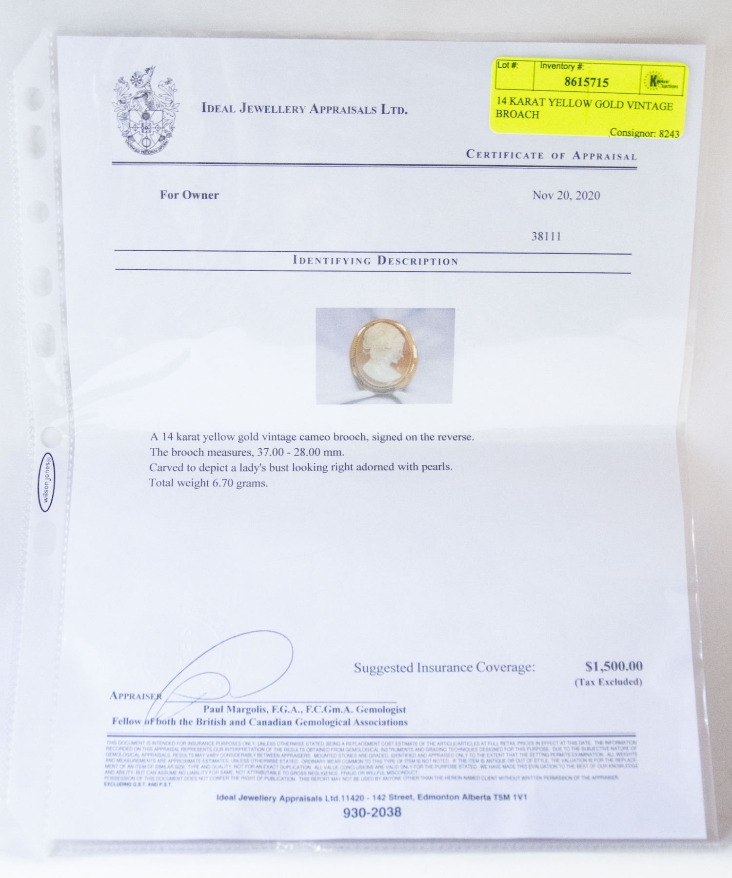 SIGNED ON REVERSE, ADORNED WITH PEARLS, TOTAL WEIGHT 6.70 GRAMS, APPRAISAL VALUE OF $1500.00