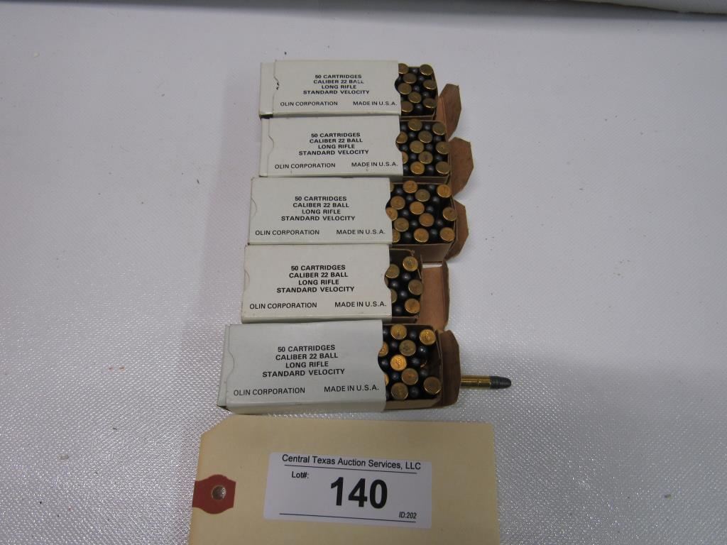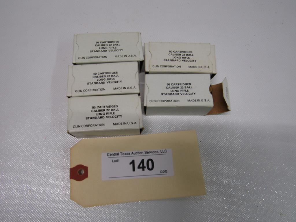 140 - 5 Full Boxes Of Olin Corp Caliber 22 Ball L R