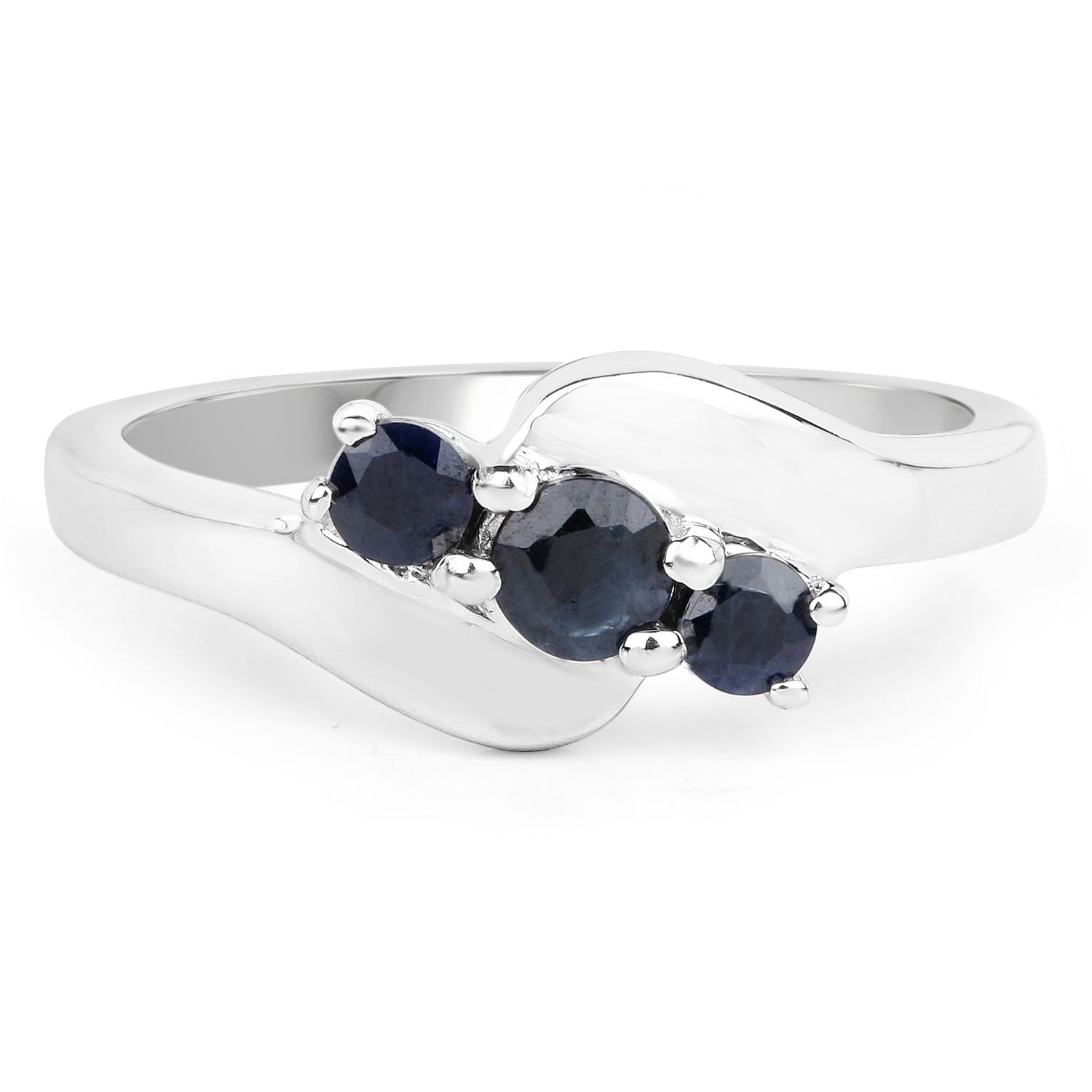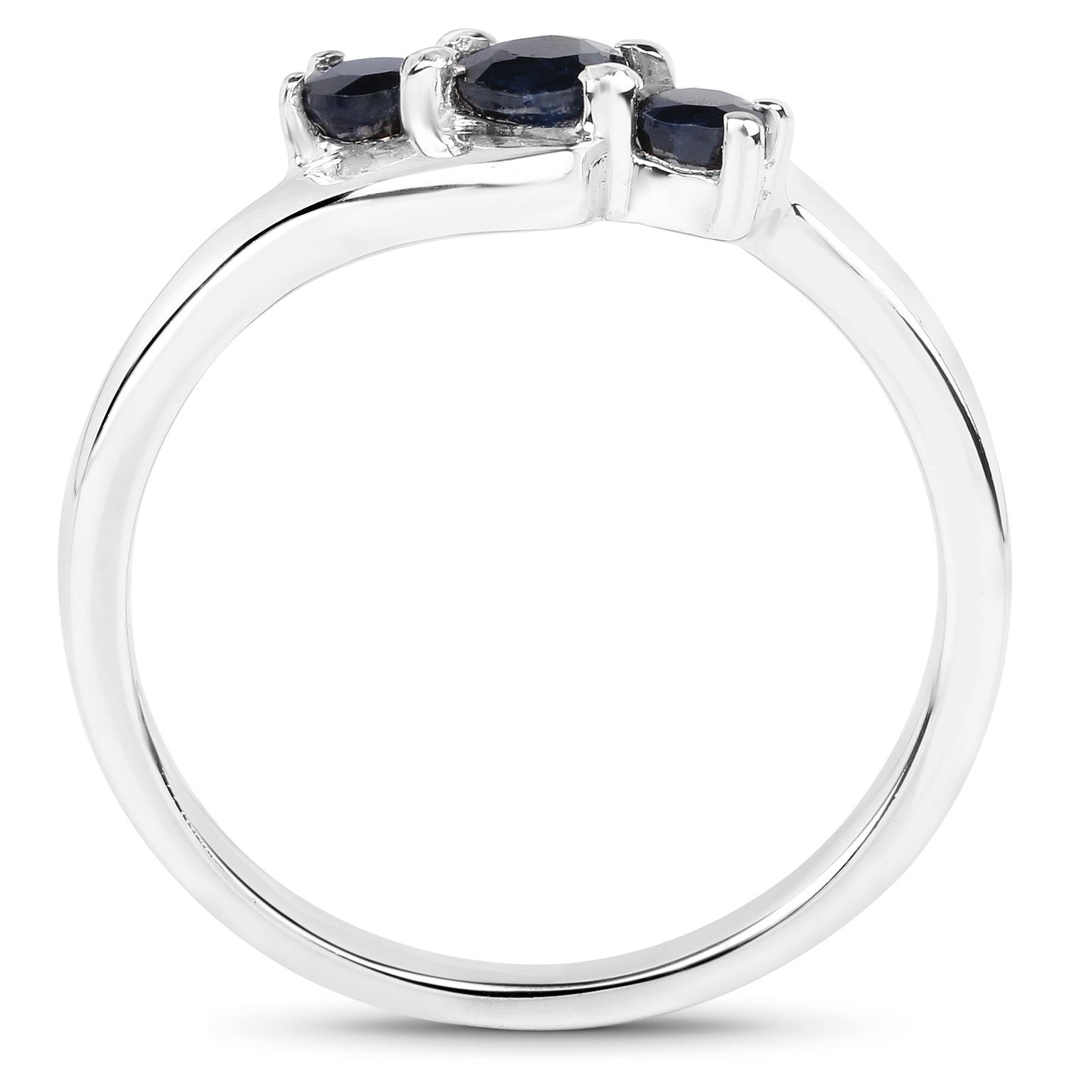 This 14 karat white gold over sterling silver ring is fashioned in a bypass and a three-stone style. Featuring .61 carats total weight of round, faceted, genuine black sapphires that can easily represent your past, present, and future, with polished bypass swirls.& nbsp; The ring is US size 7.5.& nbsp; Admin: K86371/13br