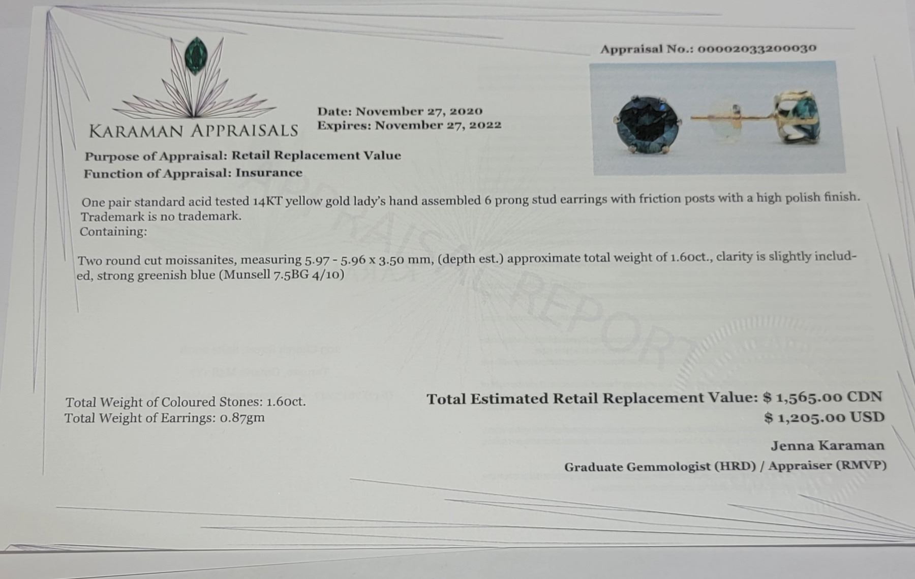 (1.6CT) EARRINGS (~WEIGHT 0.87G), MADE IN CANADA***ITEM(S) LOCATED IN LETHBRIDGE ALBERTA