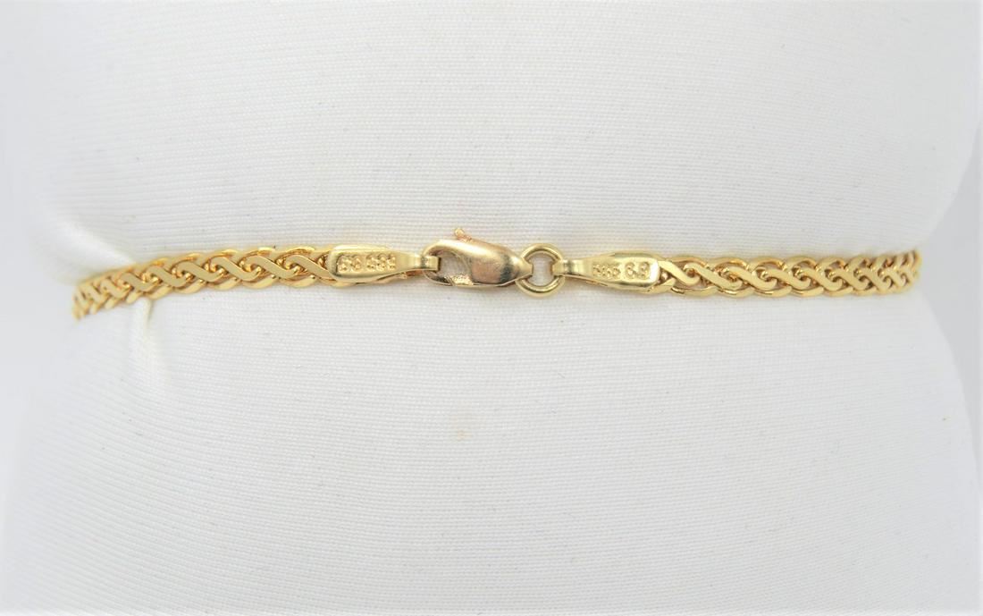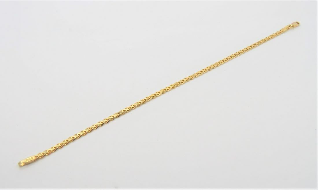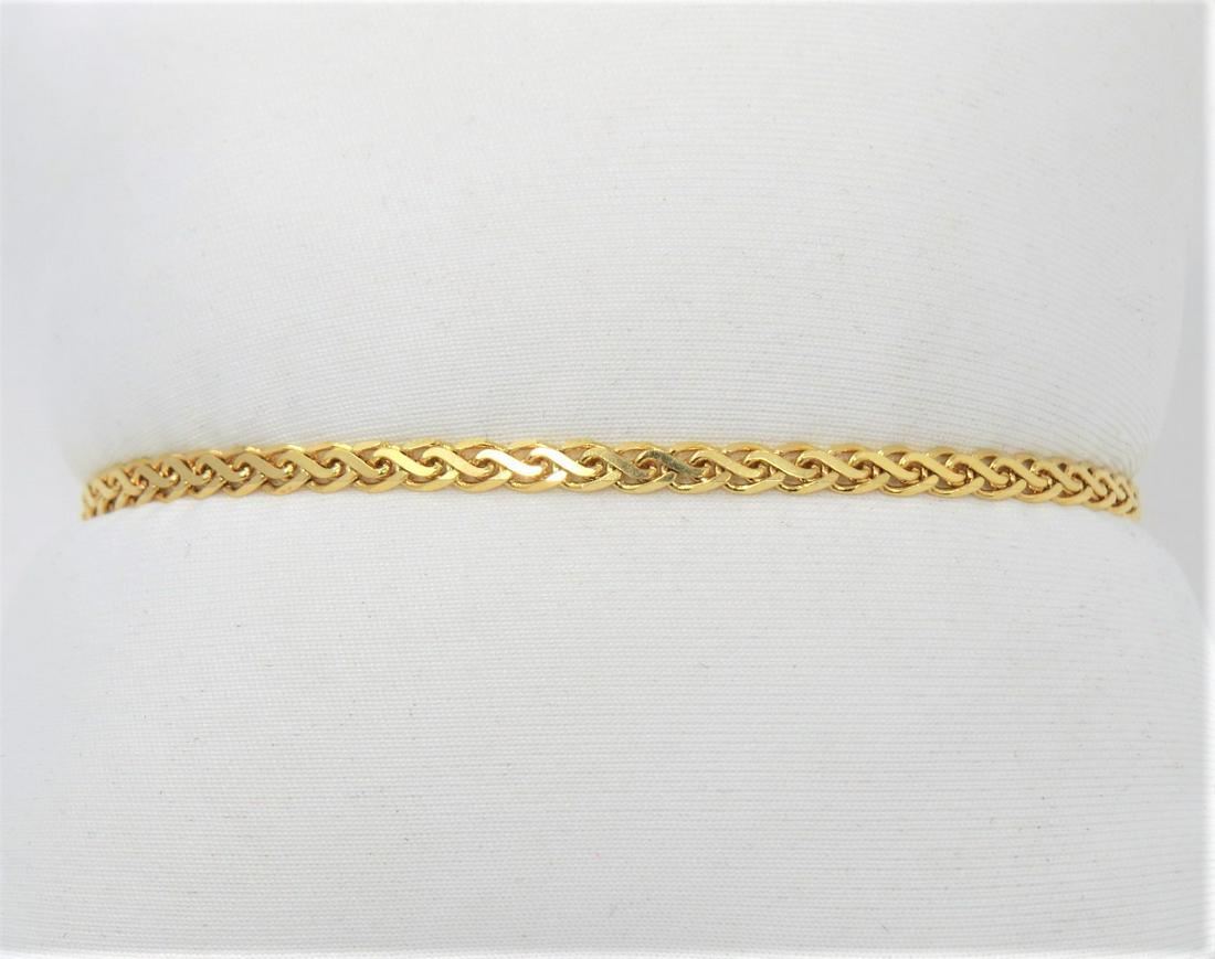 14K yellow gold ladies flat fancy link bracelet. Measuring 6.75" in length. 3 mm width. Lobster claw clasp. 3.5 grams.