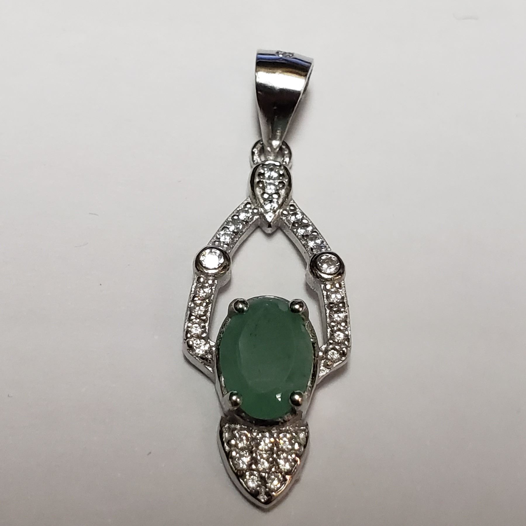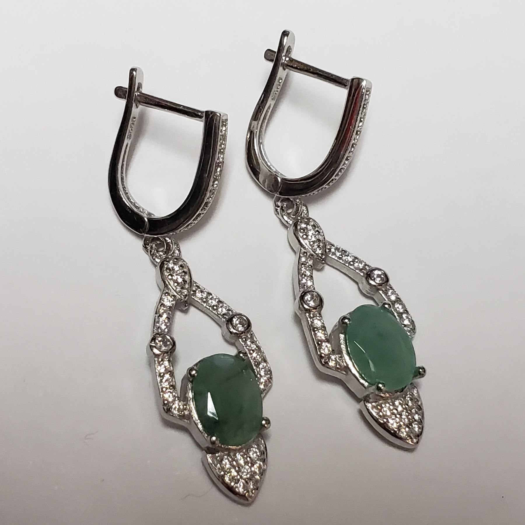 152) SILVER RHODIUM PLATED EMERALD EARRINGS,