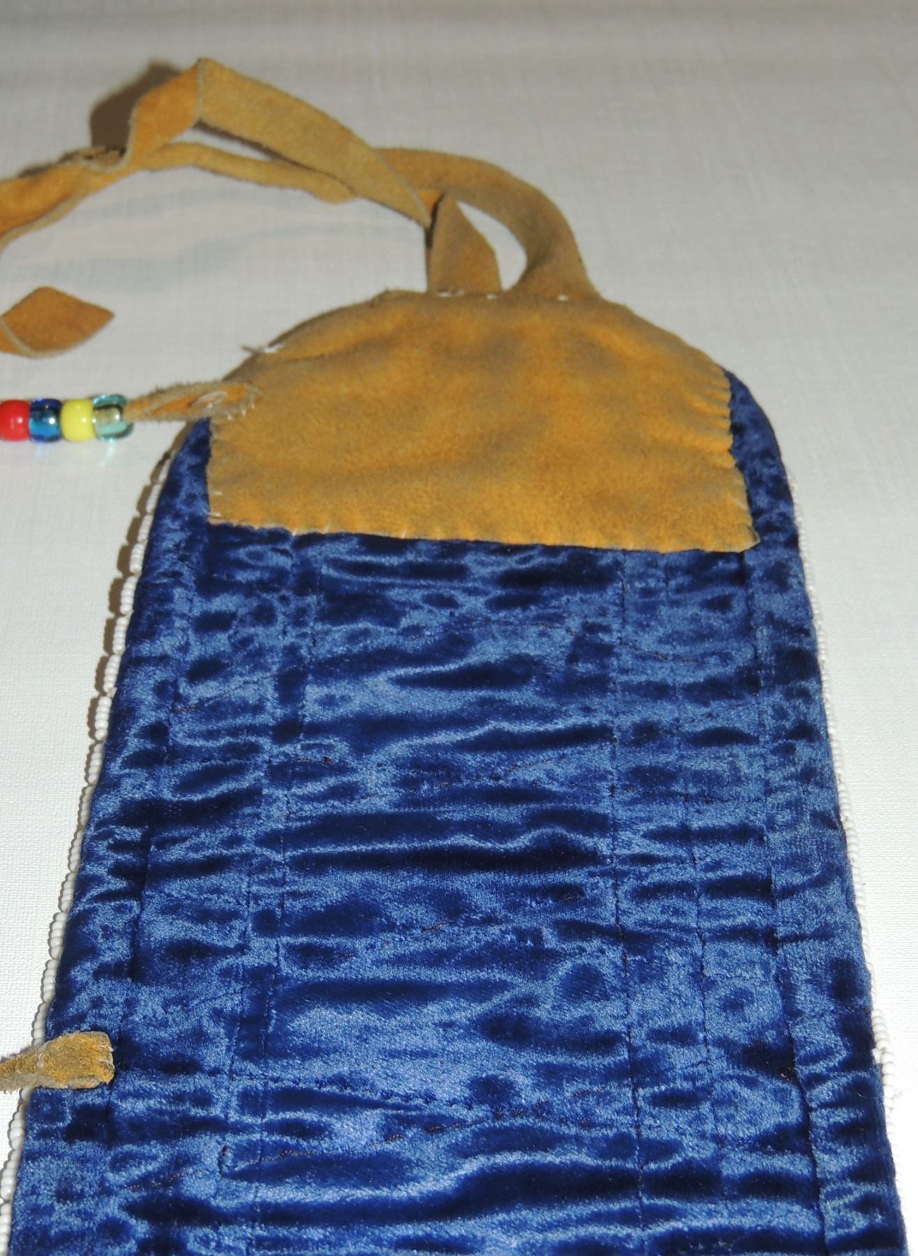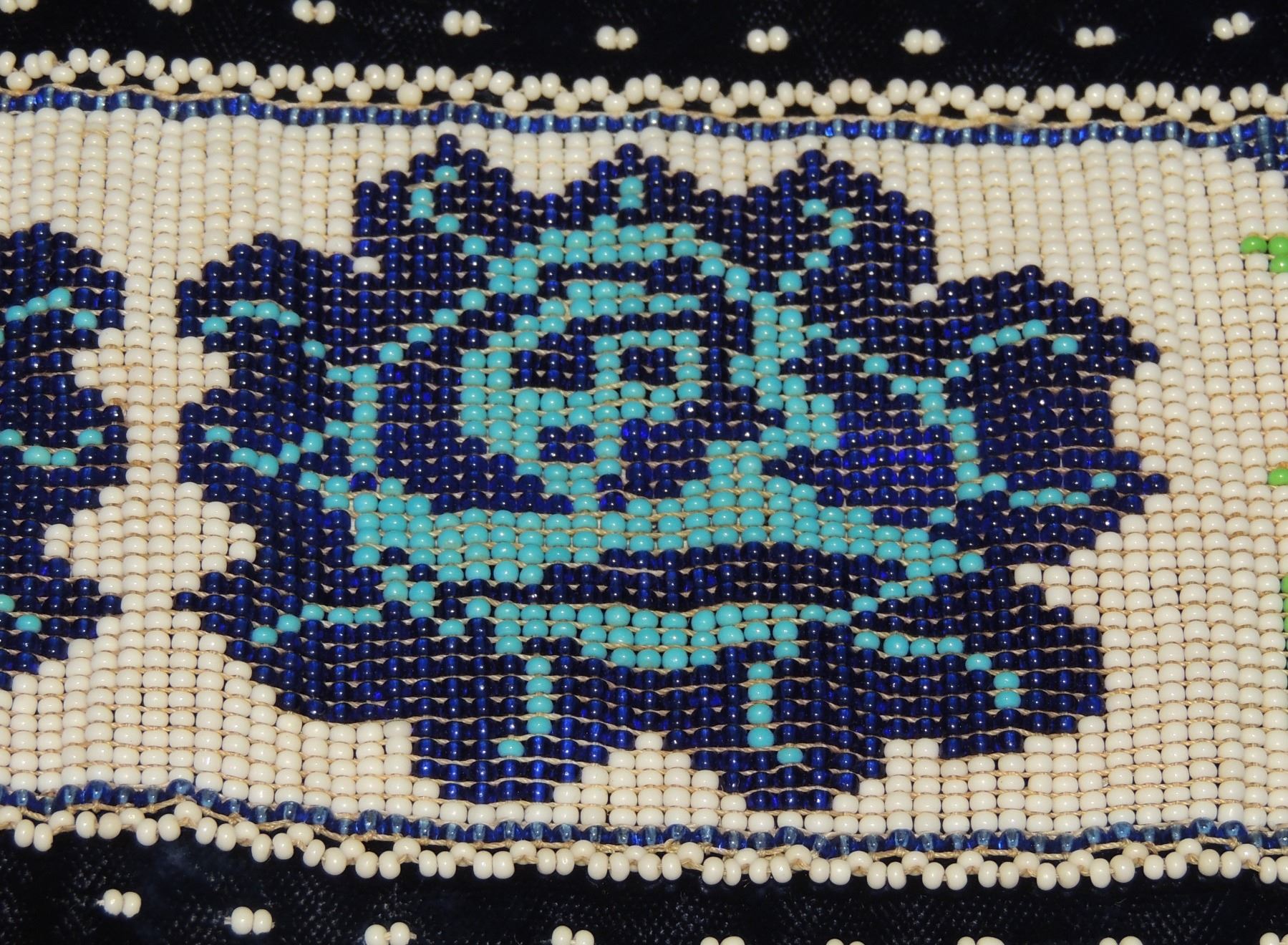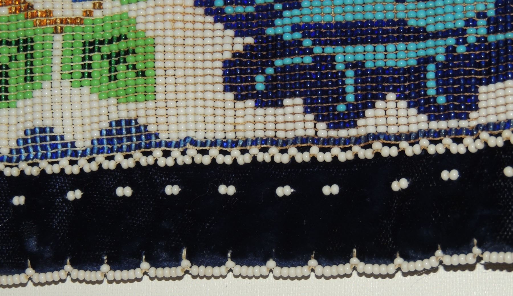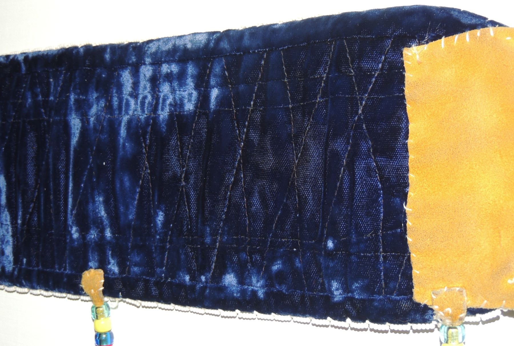 Highly Detailed floral beadwork in blue/purple/white on belt, Measuring 46 Inches Long and 5 Inches Wide. Has Leather Belt Straps Measuring 4 Inches and 11 Inch Leather Fasteners. Belt has detailed beaded Floral Pattern with tassles. Appears Métis based on beadwork, Mid/Late 1900's 20th Century. Please see our Other Auctions for additional - First Nations -Aboriginal -Indigenous Peoples - Métis- Metis - Iniut - Native American - Plains Indian - Artefacts