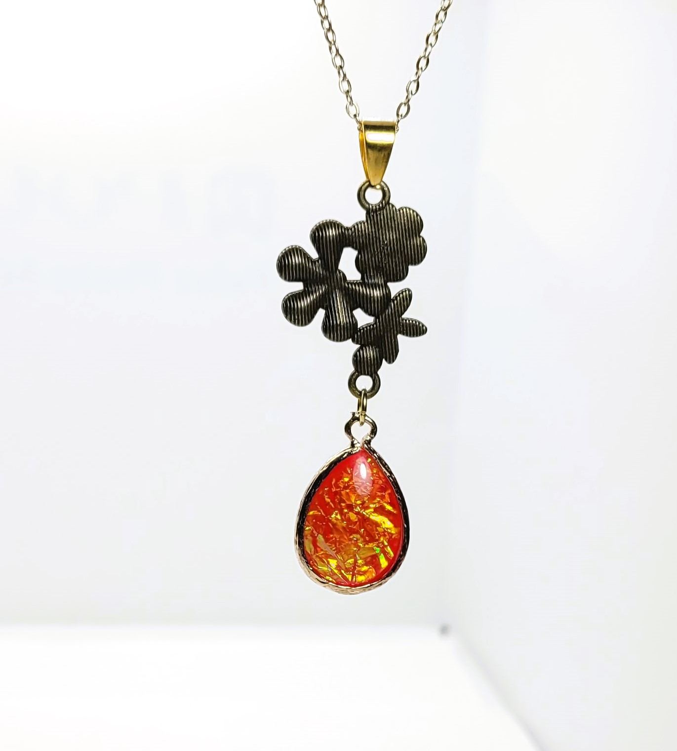 OPAL PENDANT WITH FLOWER ACCENTS ON 18" CHAIN. JEWELRY