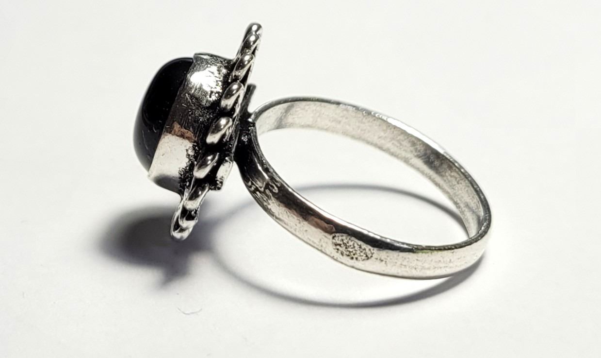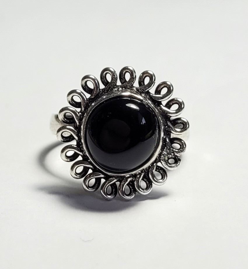 16) NATURAL ROUND BLACK ONYX SIZE 7 RING