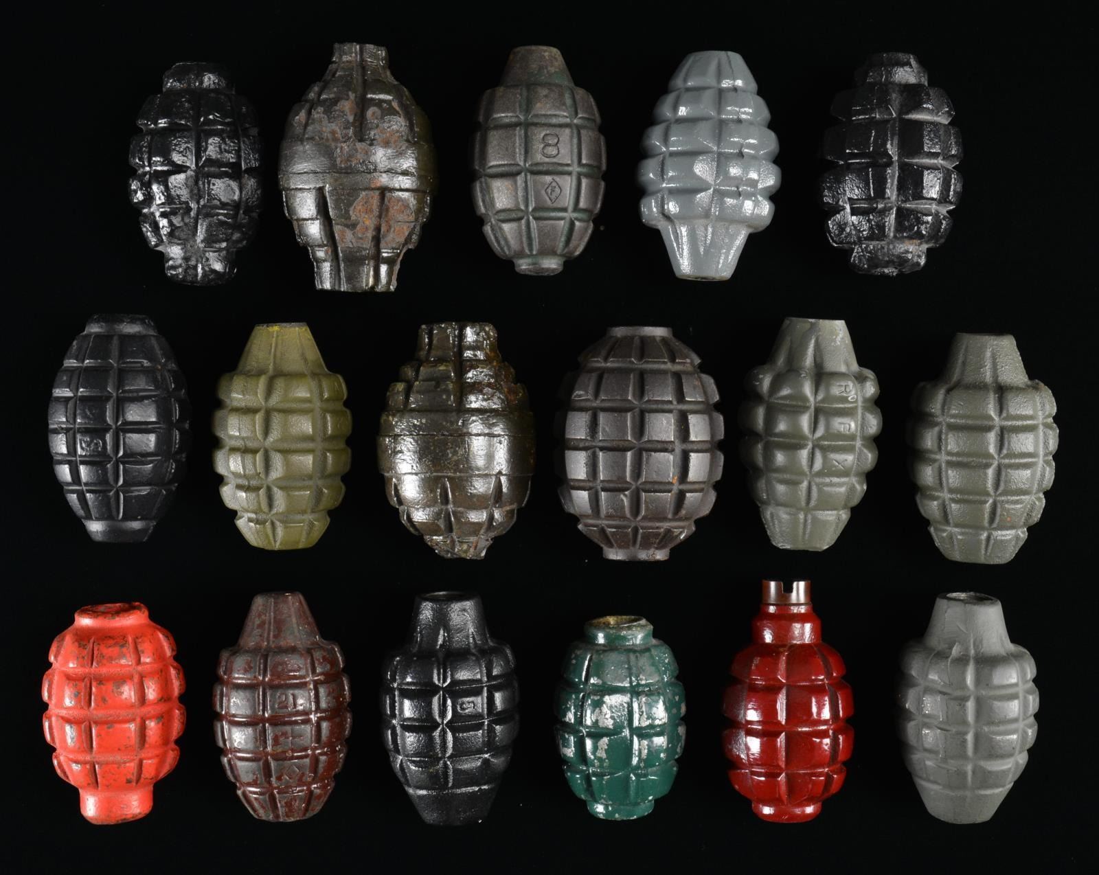 All cast iron w/ various different styles & finishes. One is larger than others diameter 2.5". CONDITION: fair to good overall w/ handling marks, flaking finish & pitting. (02-16250-2/MD). $150-300