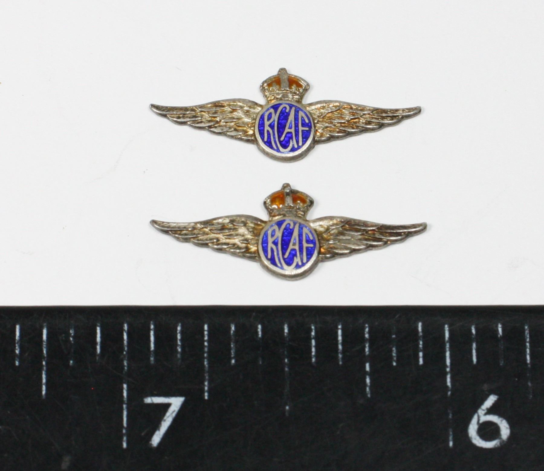 STERLING SILVER ROYAL CANADIAN AIR FORCE PAIR RCAF SWEETHEART BADGE CENTERPIECE W/ ENAMEL STERLING MARKED ON REVERSE WORLD WAR TWO ALLIED FORCES HOMEFRONT