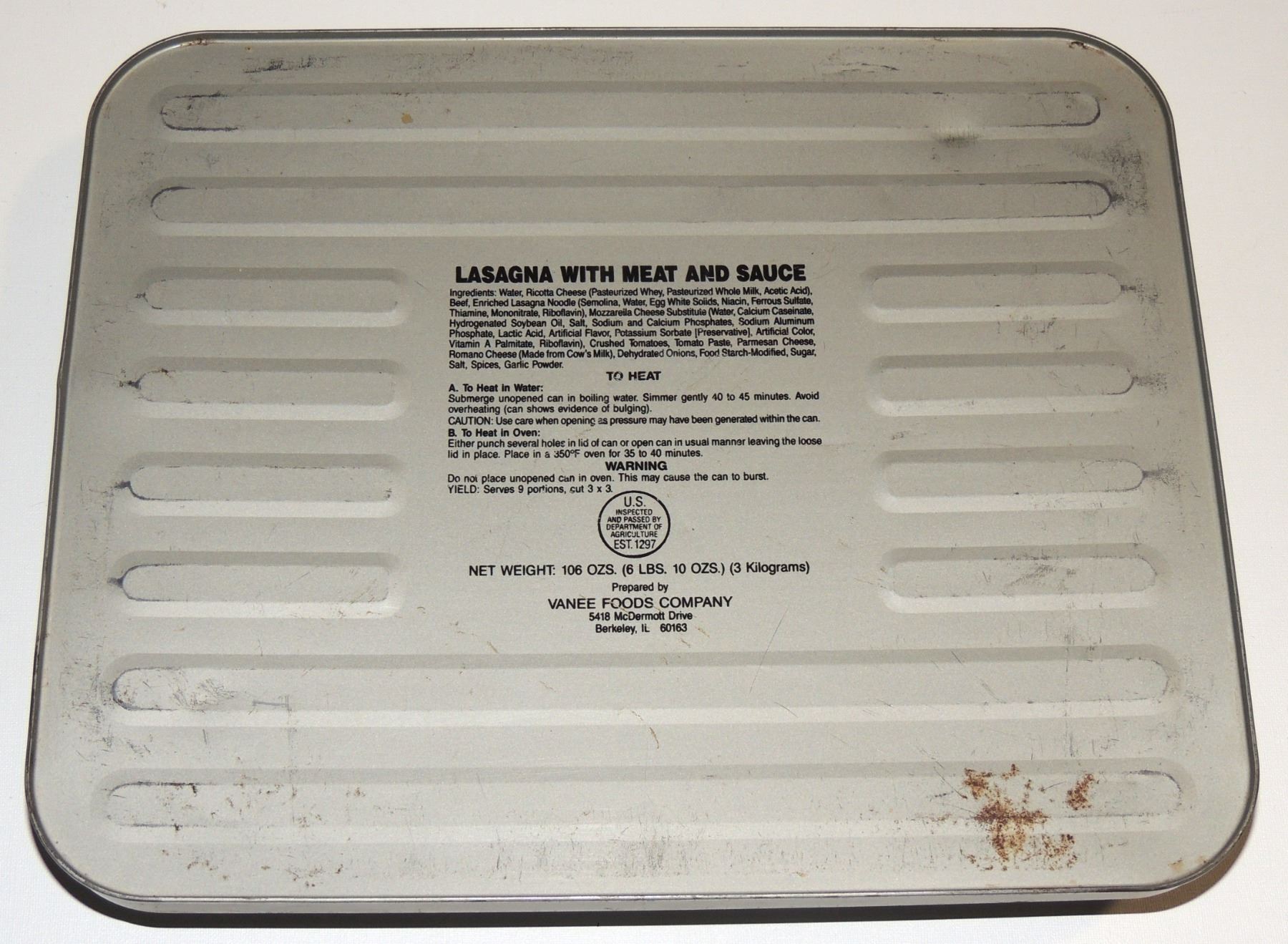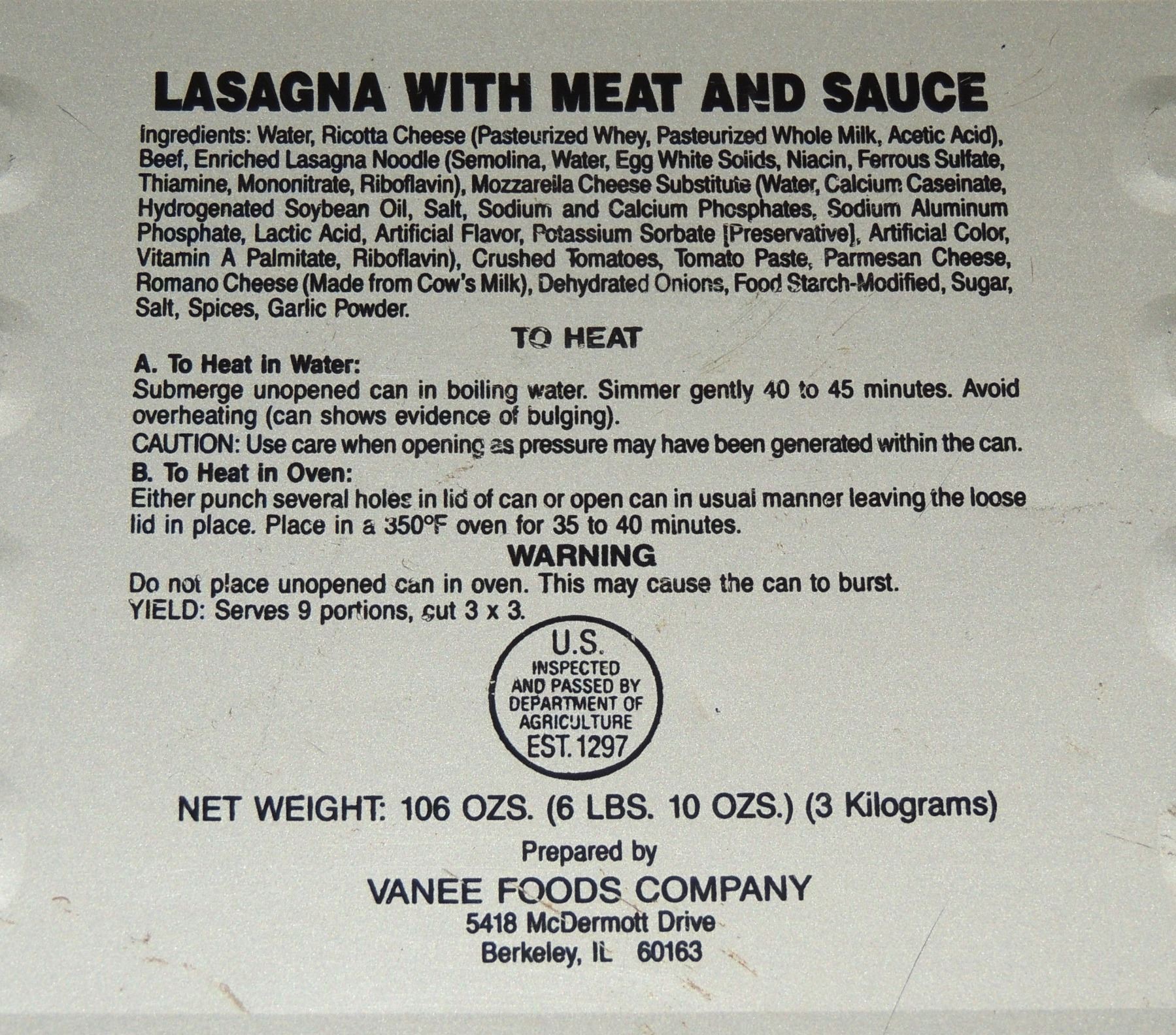 #175b Large US Army Ration in tin Lasagna
