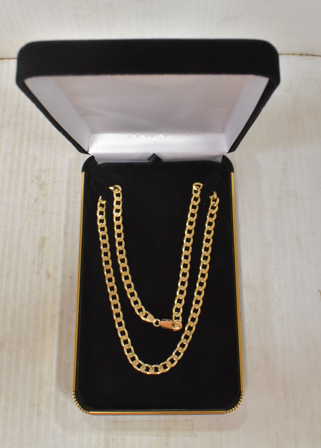 THE BRIGHT CUT CURB LINK CHAIN MEASURES 6.35 X 1.95MM IN WIDTH. OVERALL LENGTH 20.50 INCHES. COMPLETED WITH A 10 KARAT YELLOW GOLD LOBSTER CLASP. TOTAL WEIGHT 45.73 GRAMS. APPRAISAL VALUE OF $12,000.00 **ALL ITEMS MUST BE REMOVED BY 5PM MONDAY, SEPTEMBER 10, 2022. ALL REMAINING ITEMS WILL BE SUBJECT TO A $6.00 PER DAY STORAGE CHARGE. ANY ITEMS REMAINING AFTER MONDAY, SEPTEMBER 10, 2022 WILL BE CONSIDERED FORFEITED. NO REFUNDS WILL BE ISSUED FOR FORFEITED ITEMS.TO SCHEDULE A PICK UP APPOINTMENT CLICK HERE