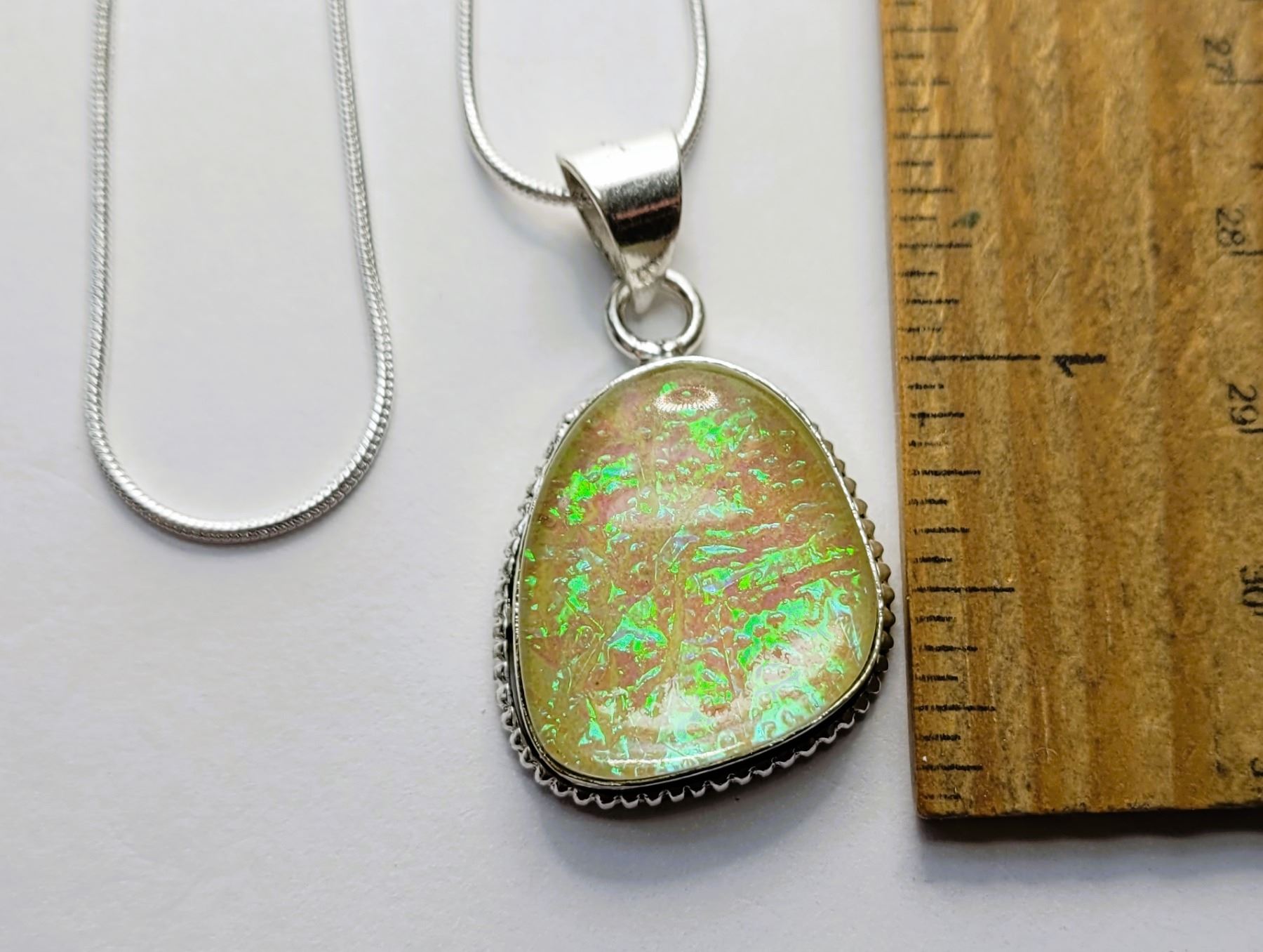 AUSTRALIAN FREEFORM TRIPLATE OPAL PENDANT ON 18" SNAKE CHAIN