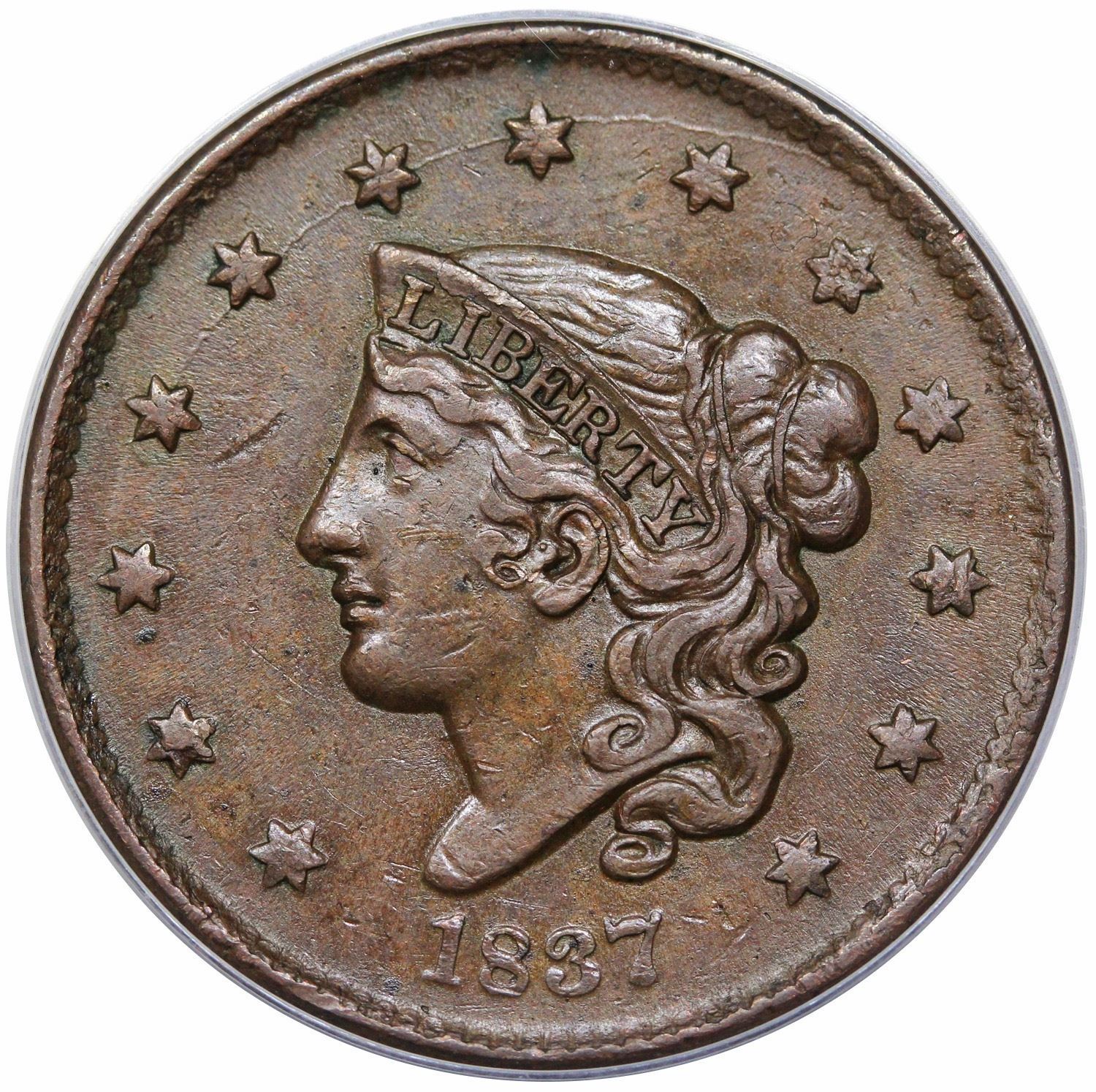 1837 Coronet Head Large Cent, N-4, R2, ANACS AU50.