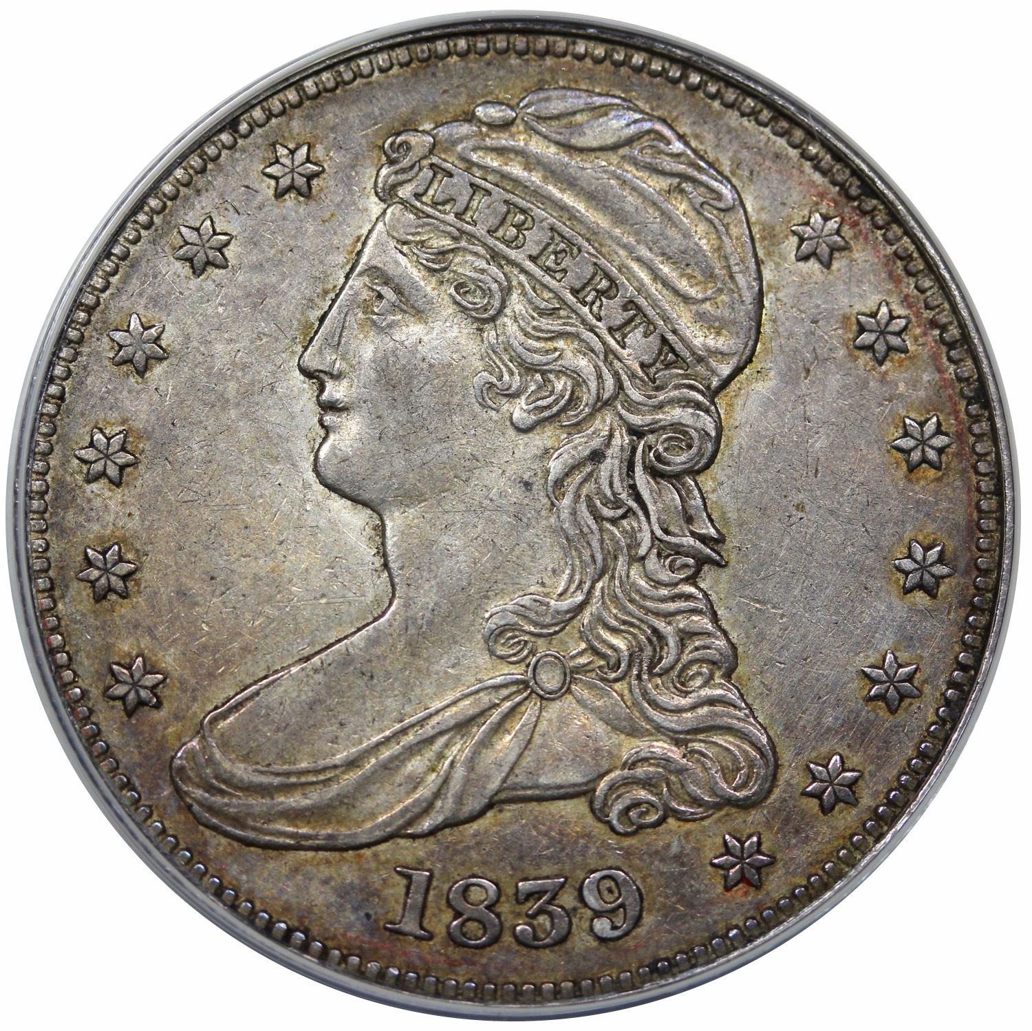 1839 Capped Bust Half Dollar, ANACS AU55 details, scratched.