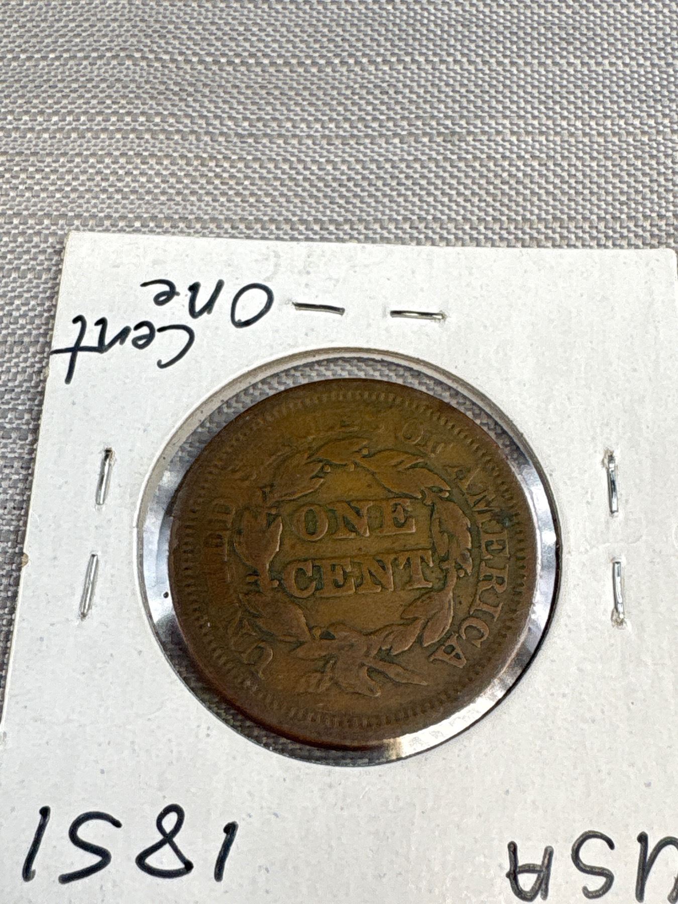 1851 US 1 Cent Coin
