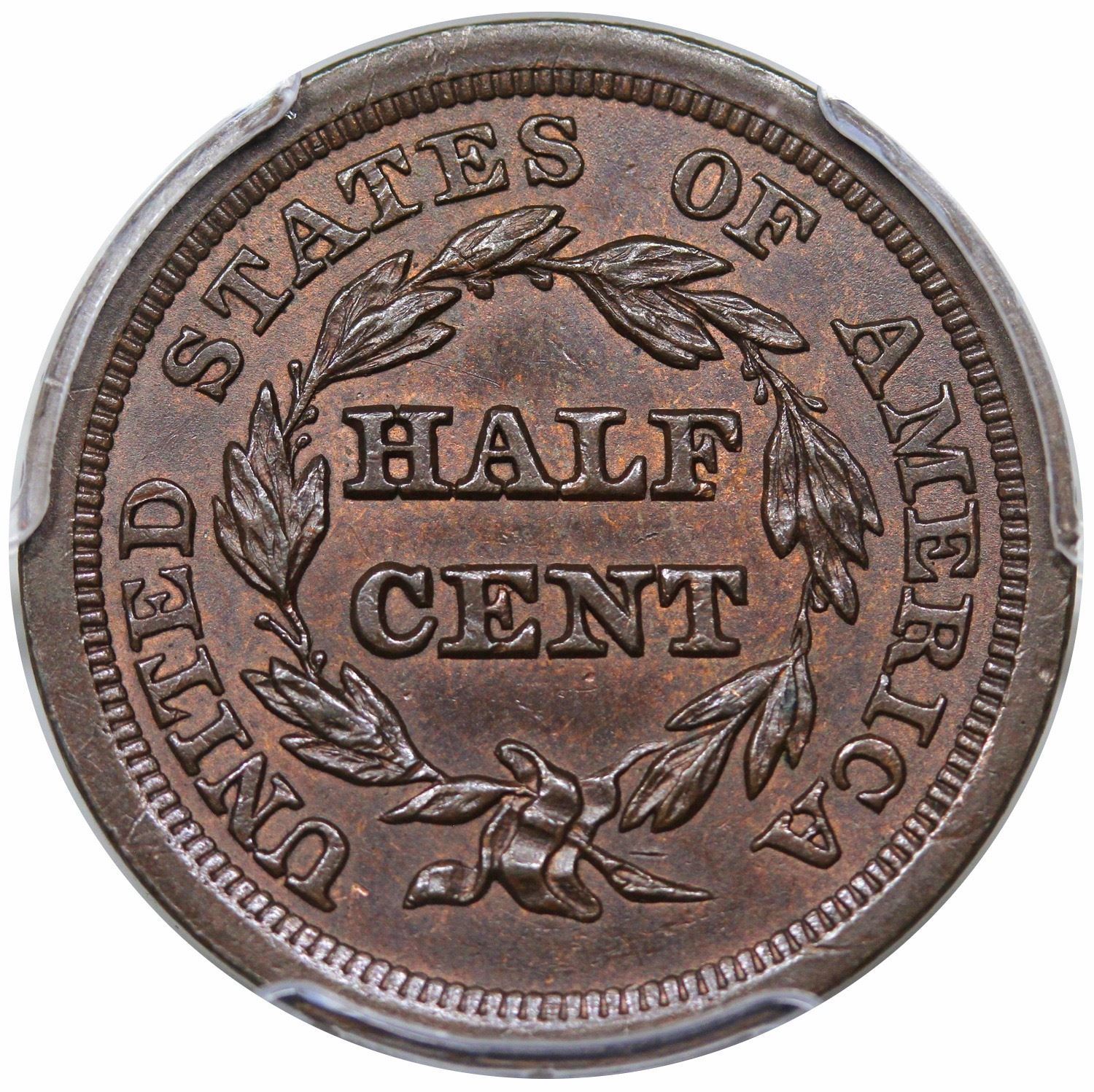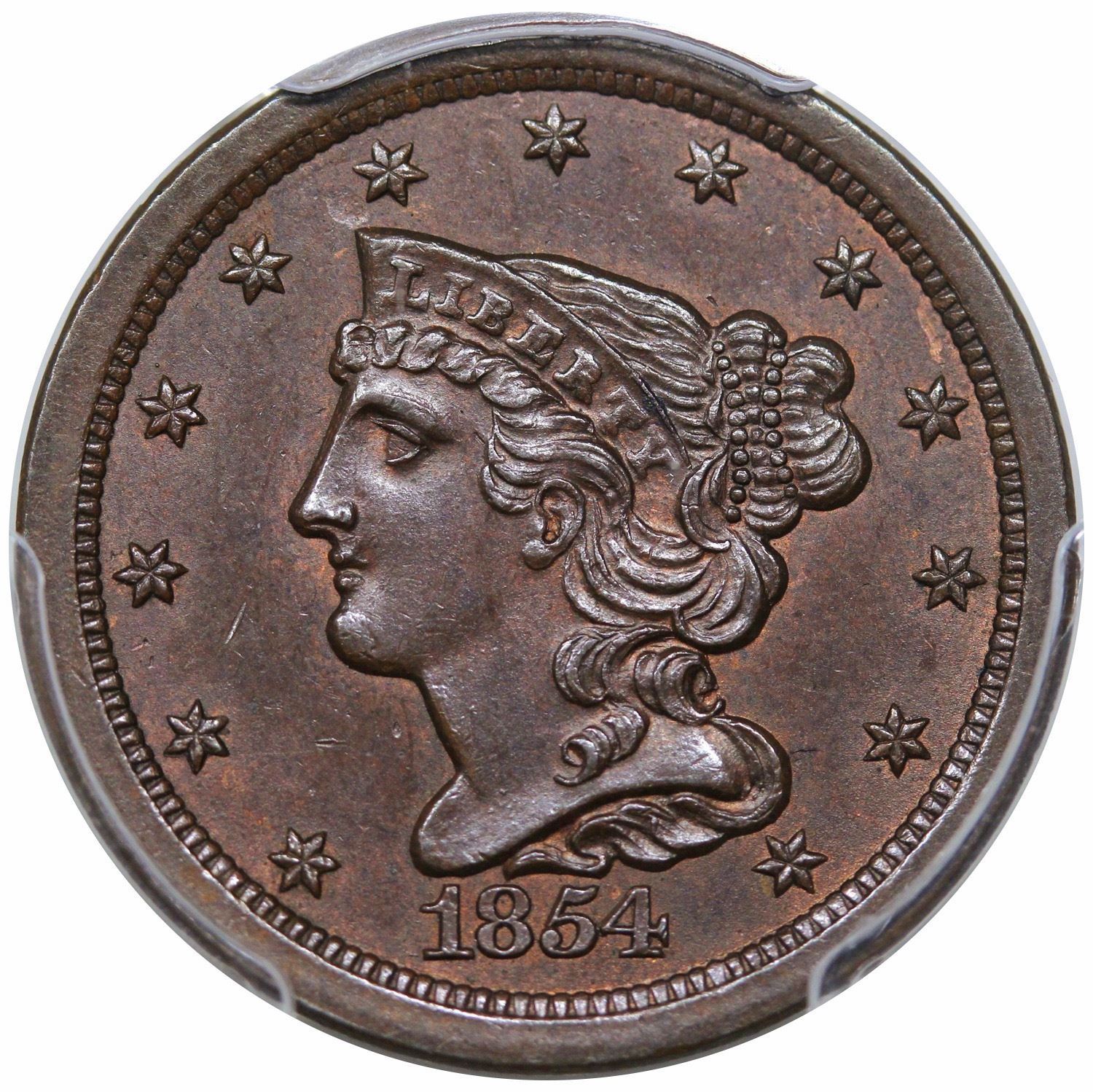 1854 Braided Hair Half Cent, C-1, R1, PCGS MS63BN.
