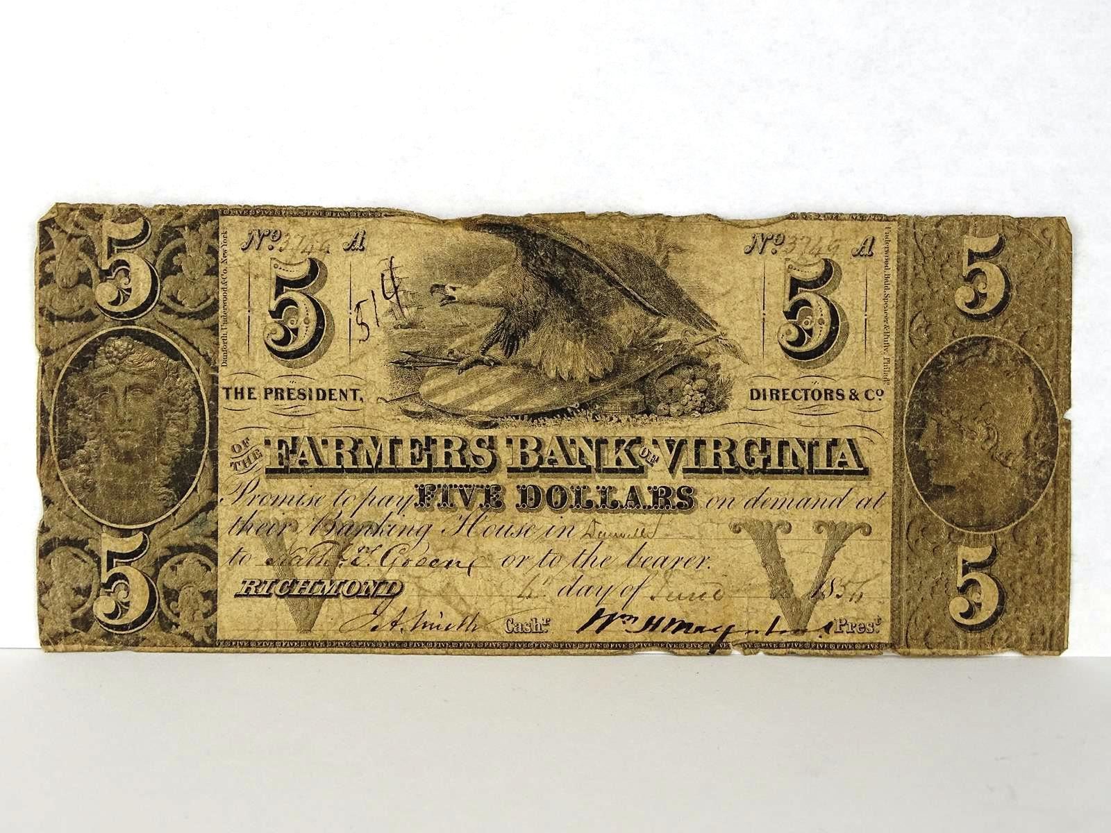 1856 FARMER'S BANK OF VIRGINIA $5 NOTE