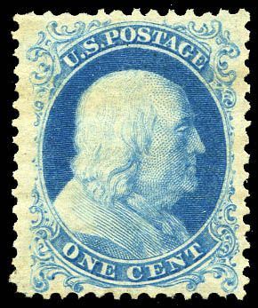 (*) 1857-60 (1875 Reprint), 1 Bright Blue. Without gum as issued. Fresh and beautifully well centered. Extremely Fine.