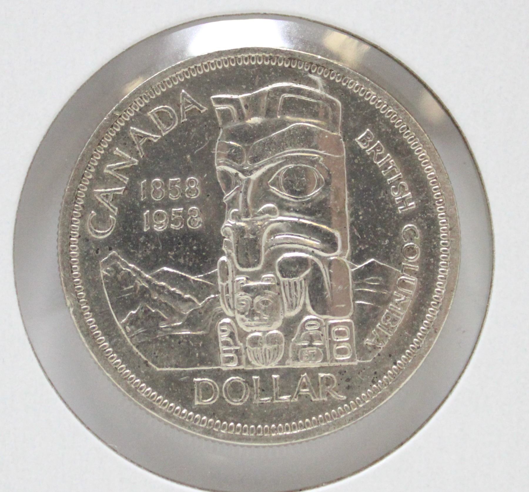 1858-1958 SILVER CANADA TOTEM POLE $1 COIN