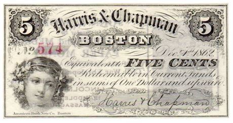 1862 Five Cents Obsolete Note Boston, Massachusetts