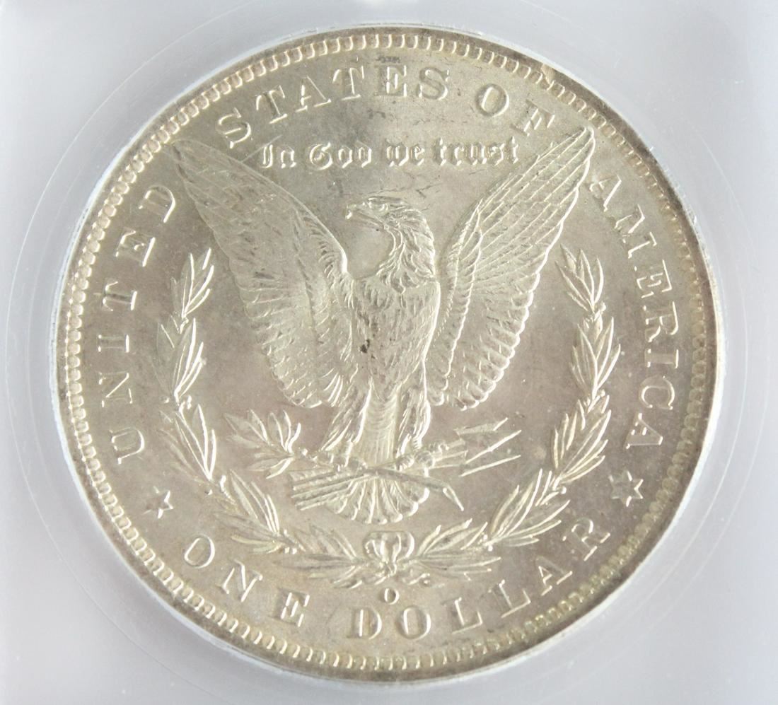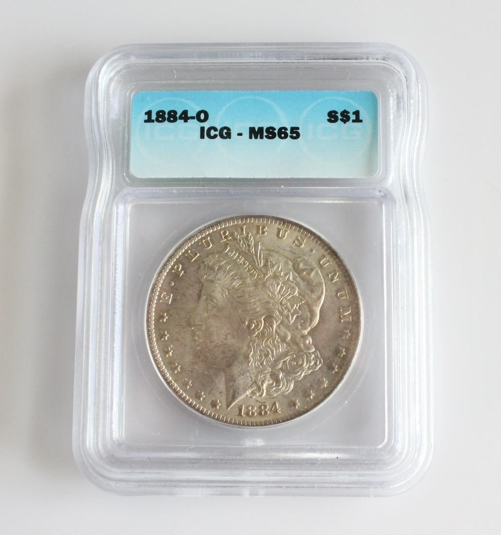 1884-O Morgan Silver Dollar ICG-graded MS65 with nice toning and a frosty luster.
