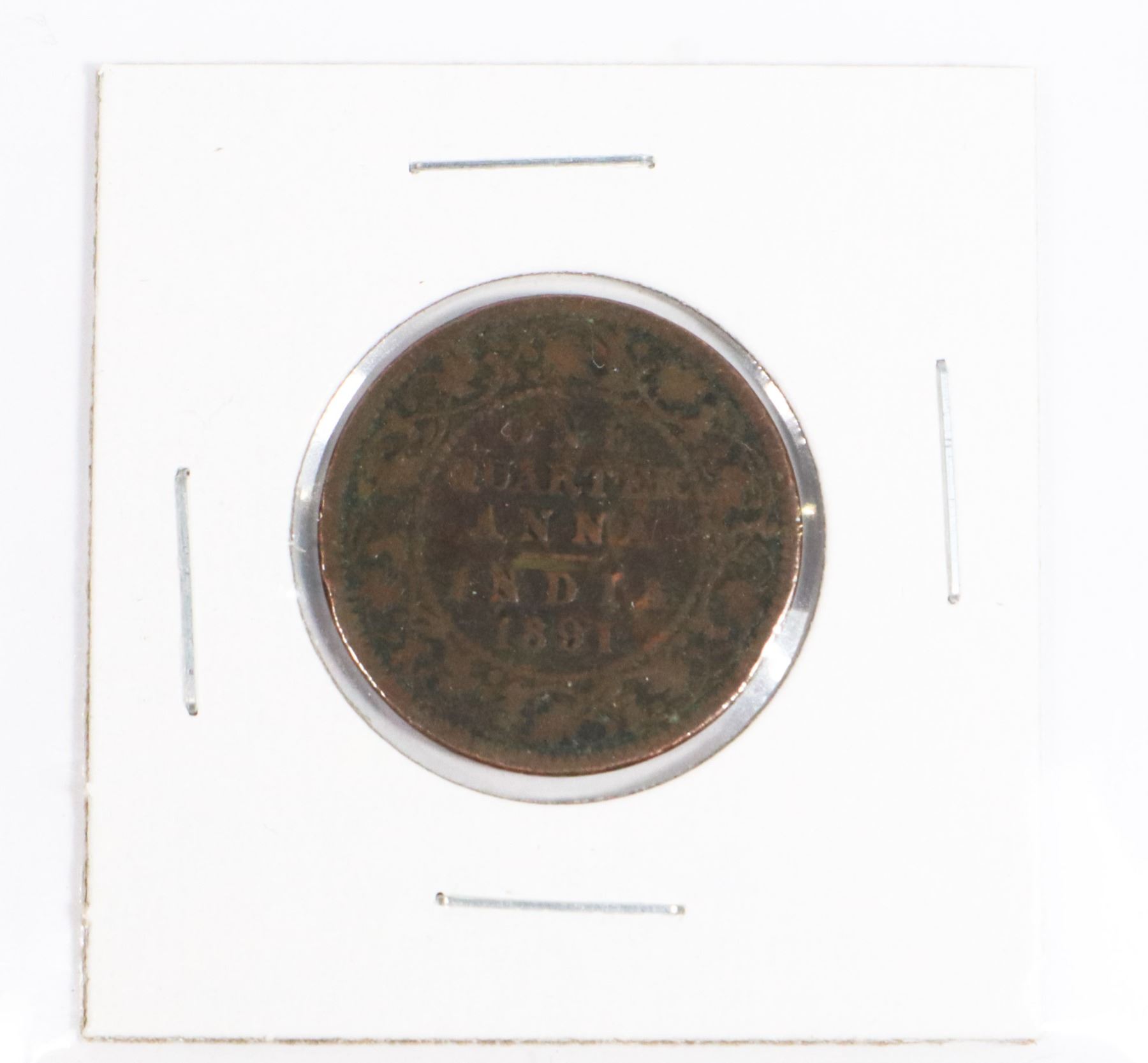 1891 BRITISH INDIA 1/4 ANNA COIN