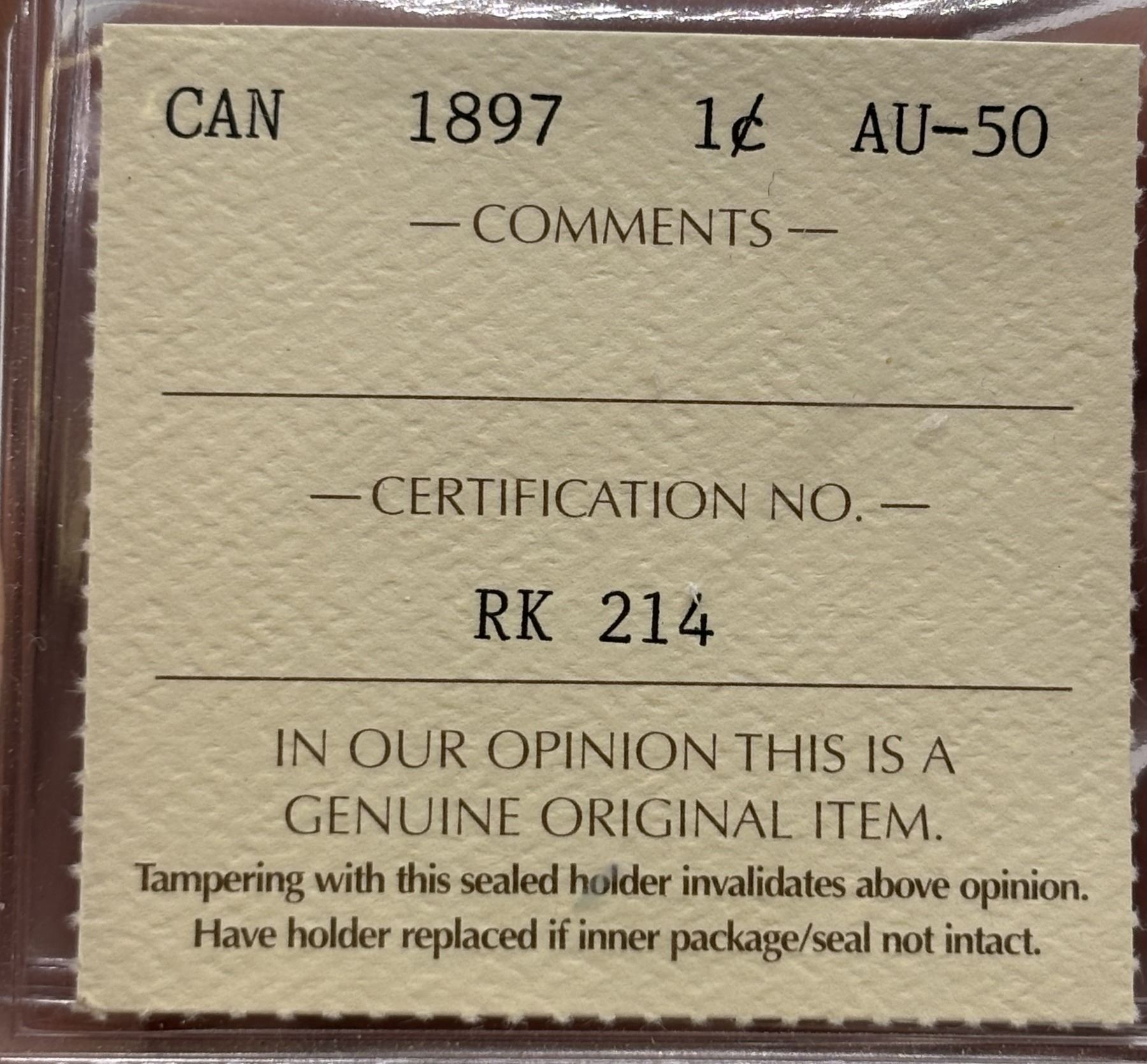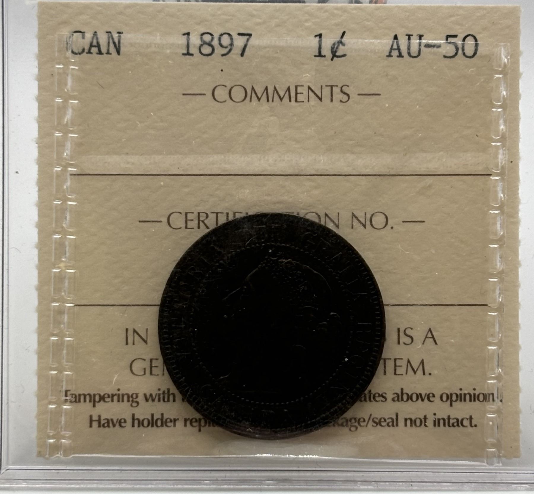 1897 Canada Large Cent. ICCS AU50