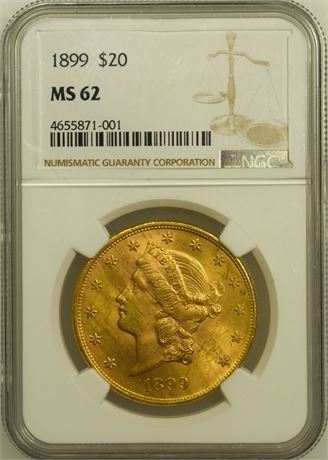 1899 $20 Gold Liberty Double Eagle NGC MS-62 #4655871-001 Estimate: $2,250 PC00334